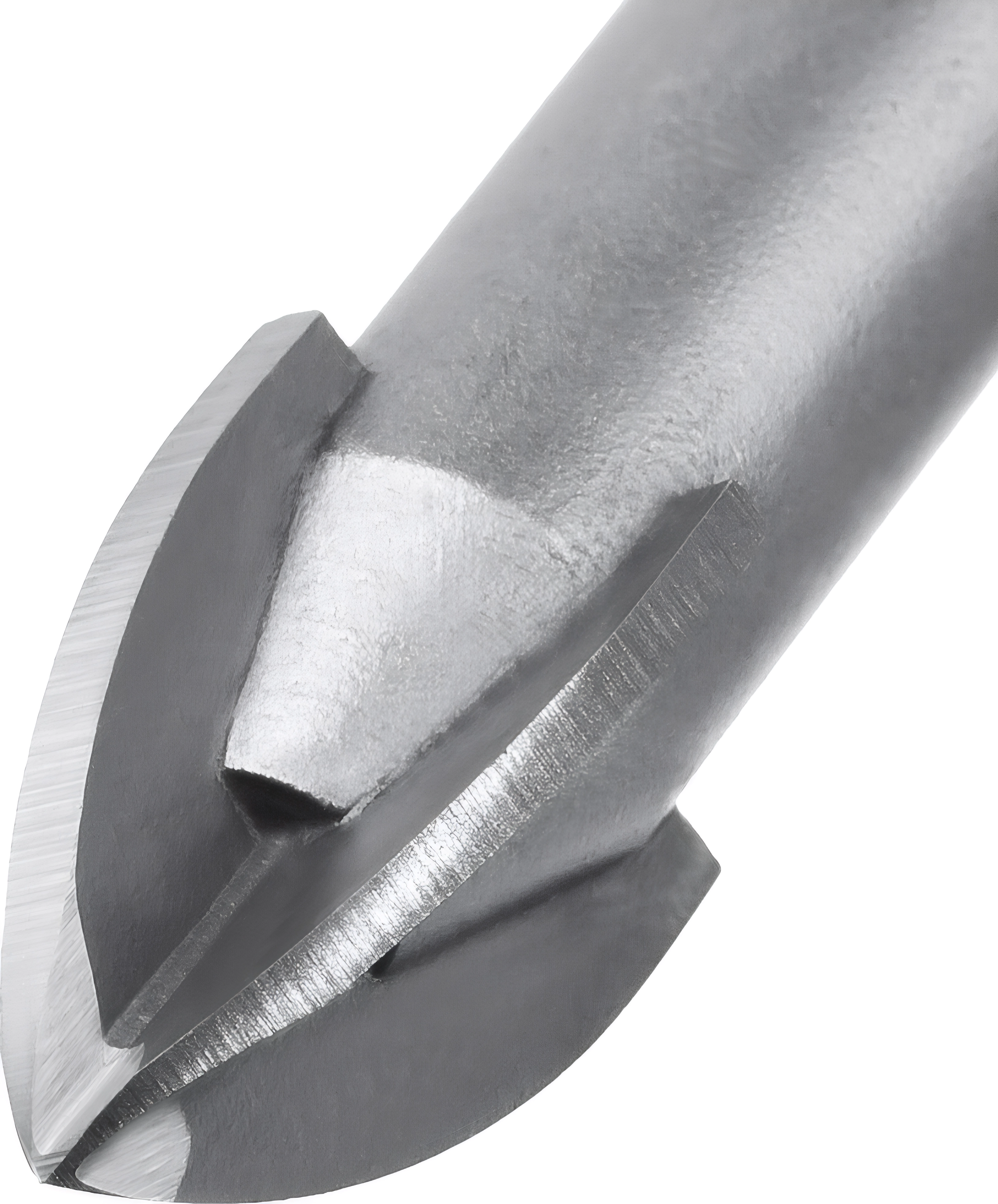 - Благодаря четырём режущим лезвиям сверление осуществляется в два раза эффективней.