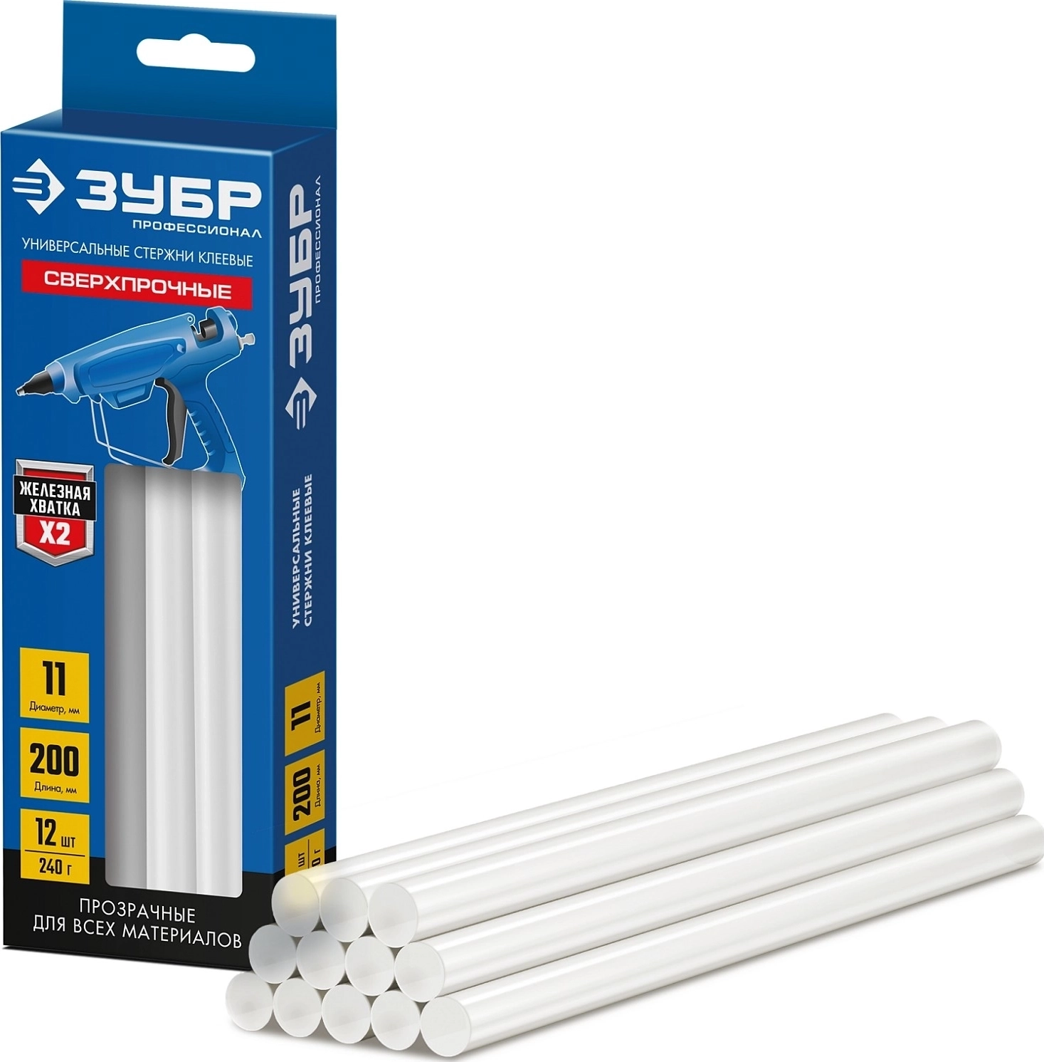 Сверхпрочные прозрачные клеевые стержни ЗУБР 11 х 200 мм 12 шт