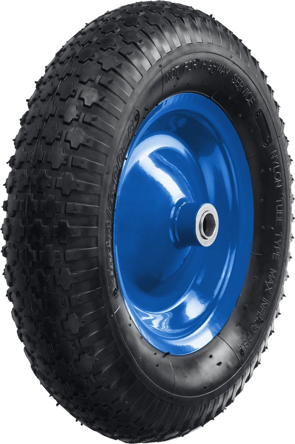 Пневматическое колесо для тачек КП-1 4" x 380 мм, стальной диск, подшипник 16 мм арт. 106679