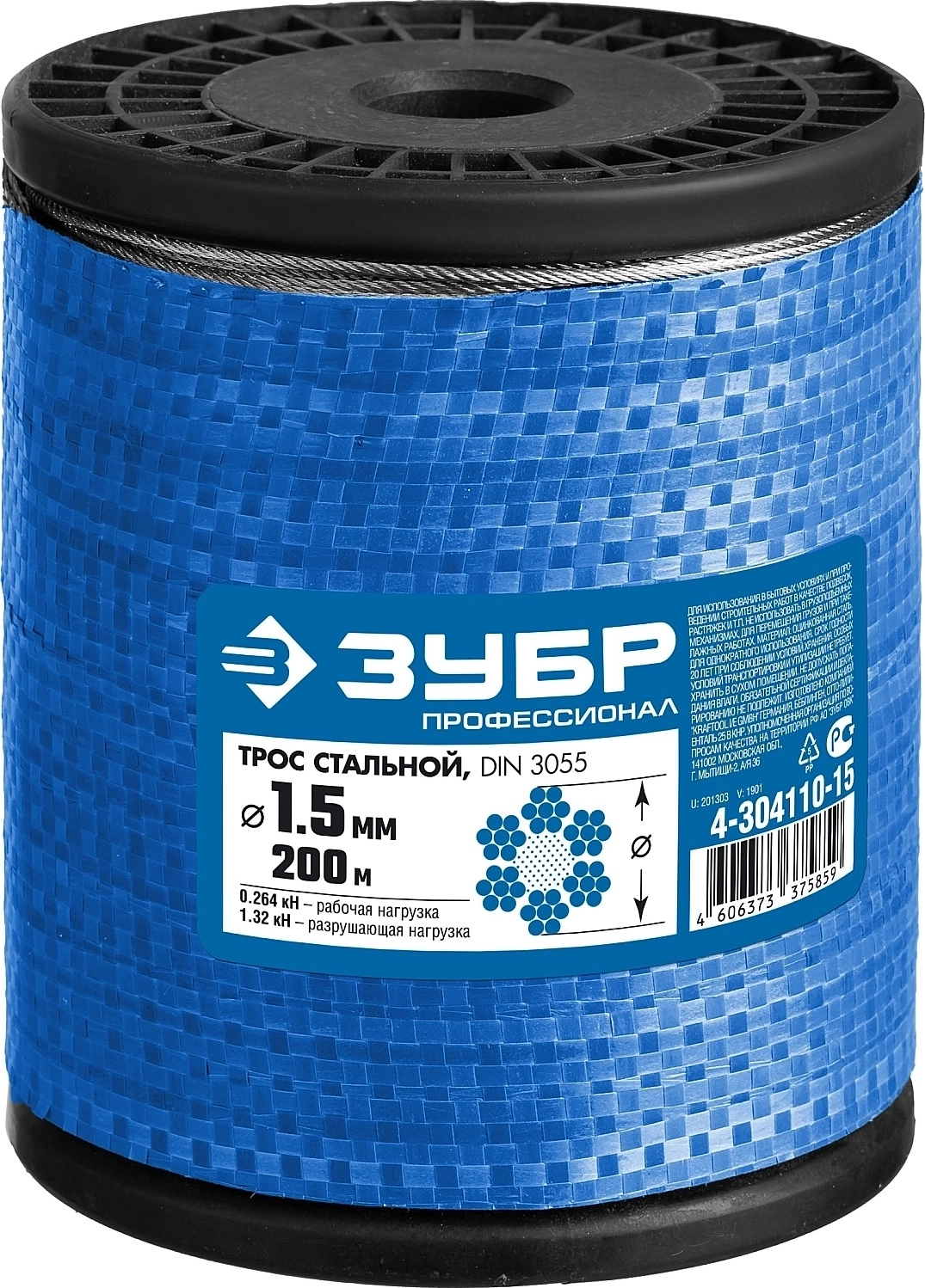 Стальной трос DIN 3055 свивка 6 х 7 + IWS 1.5 мм L 200 м арт. 108399