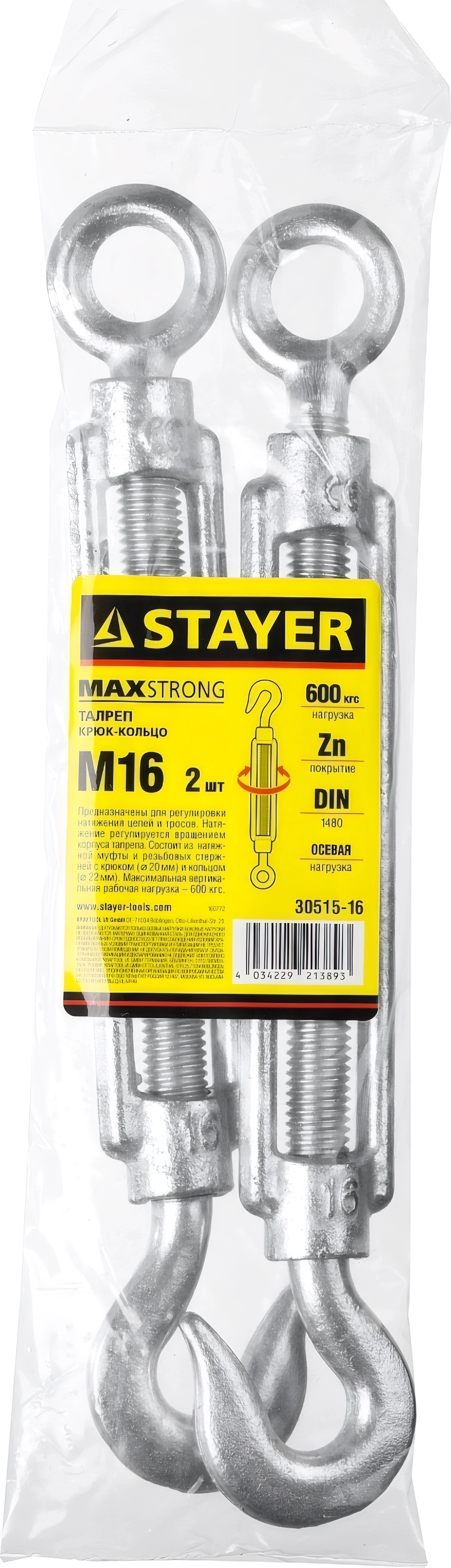 Талреп крюк-кольцо STAYER DIN 1480, М16, 2 шт