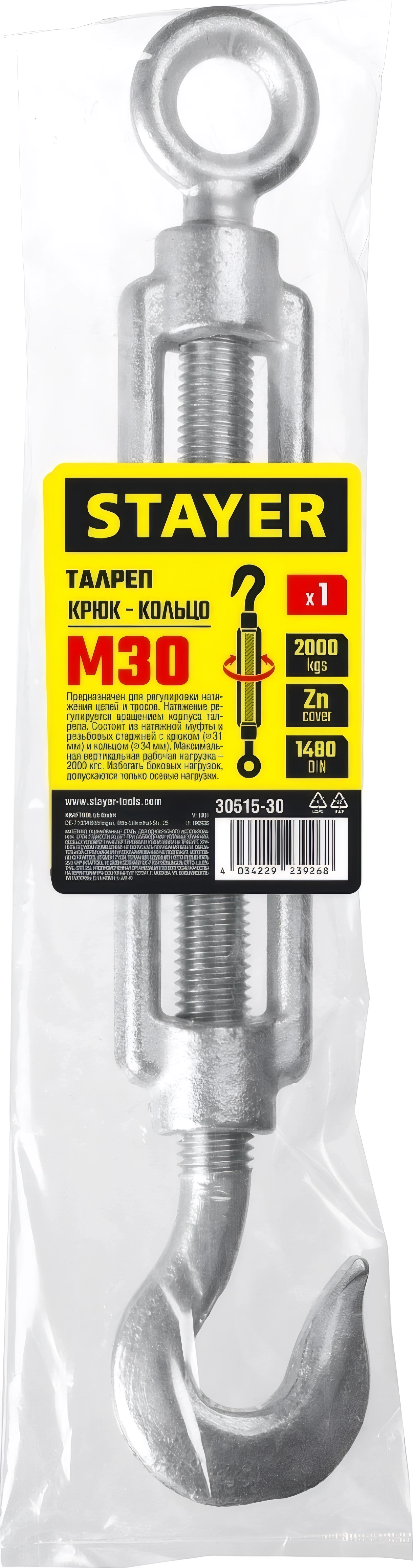 Талреп крюк-кольцо STAYER DIN 1480, М30, 1 шт