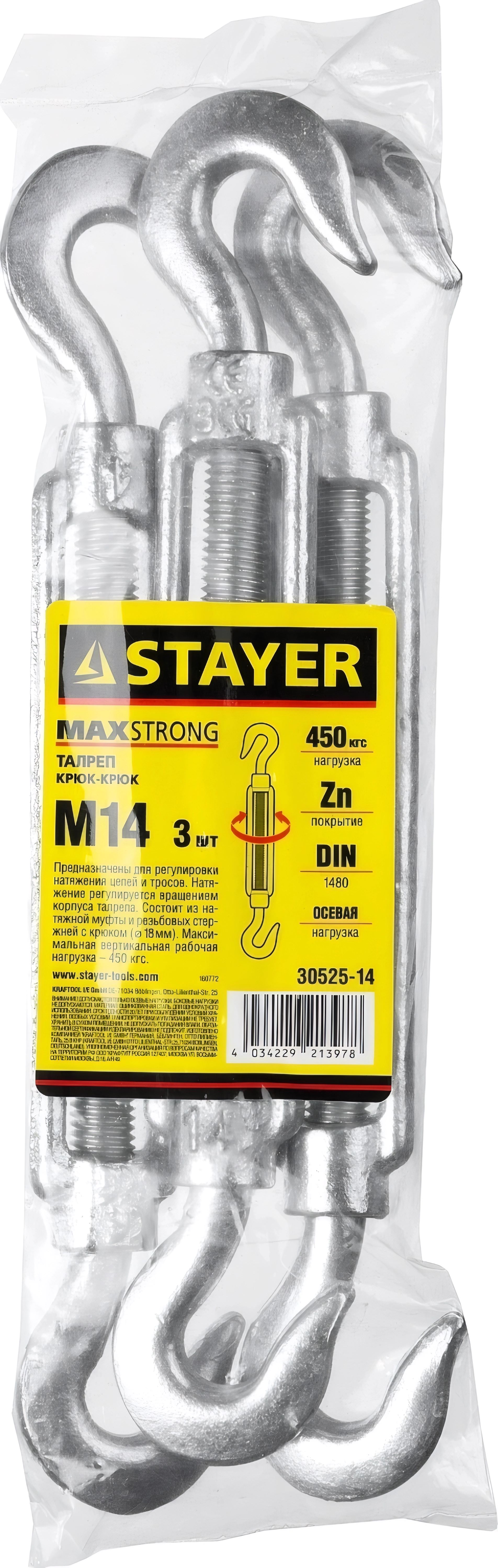 Талреп крюк-крюк STAYER DIN 1480, М14, 3 шт