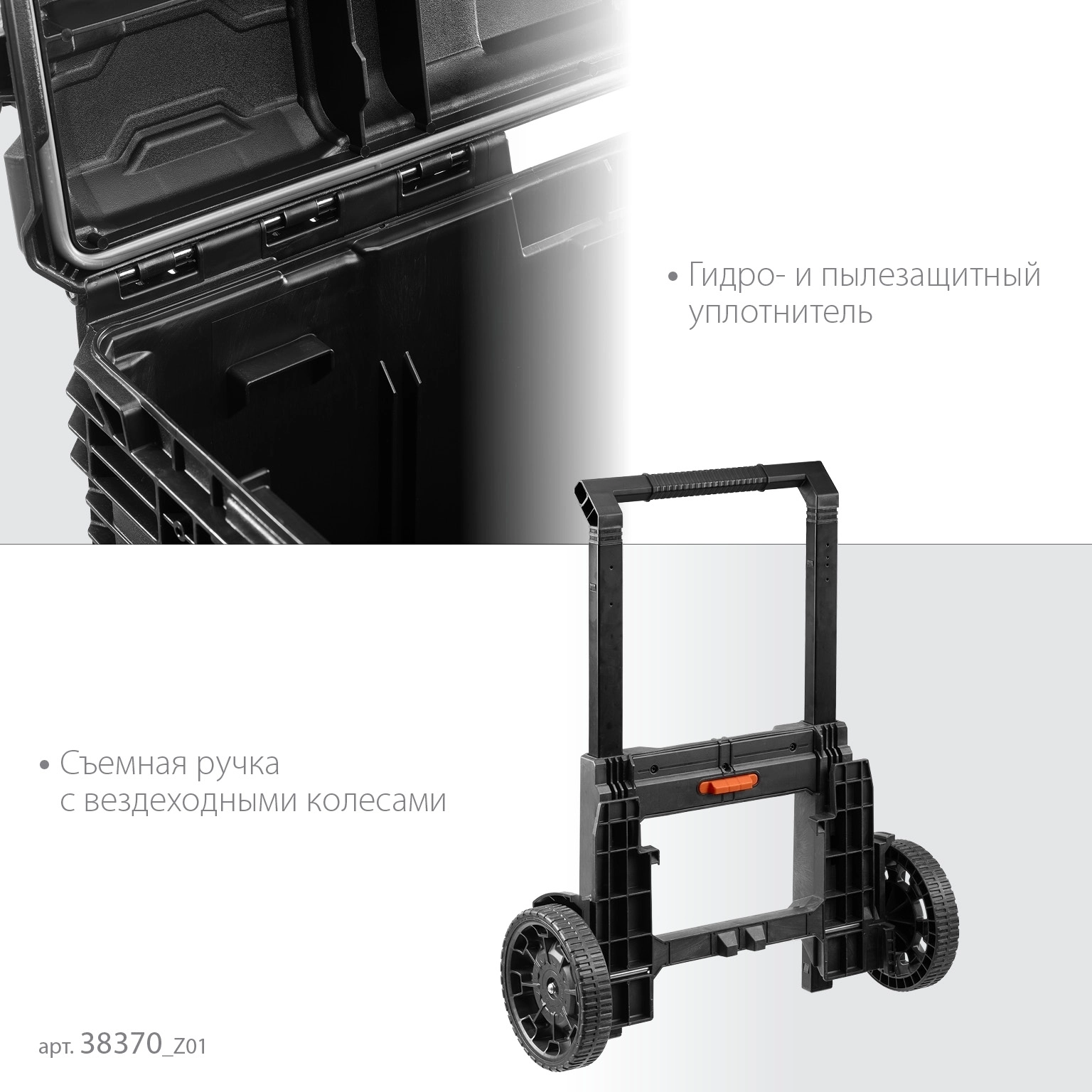 - Данная модель оснащена специальными боковыми металлическими ручками для установки дополнительных блоков один на другой. Это позволяет создать единую надежную конструкцию и перевозить большие объемы инструмента.