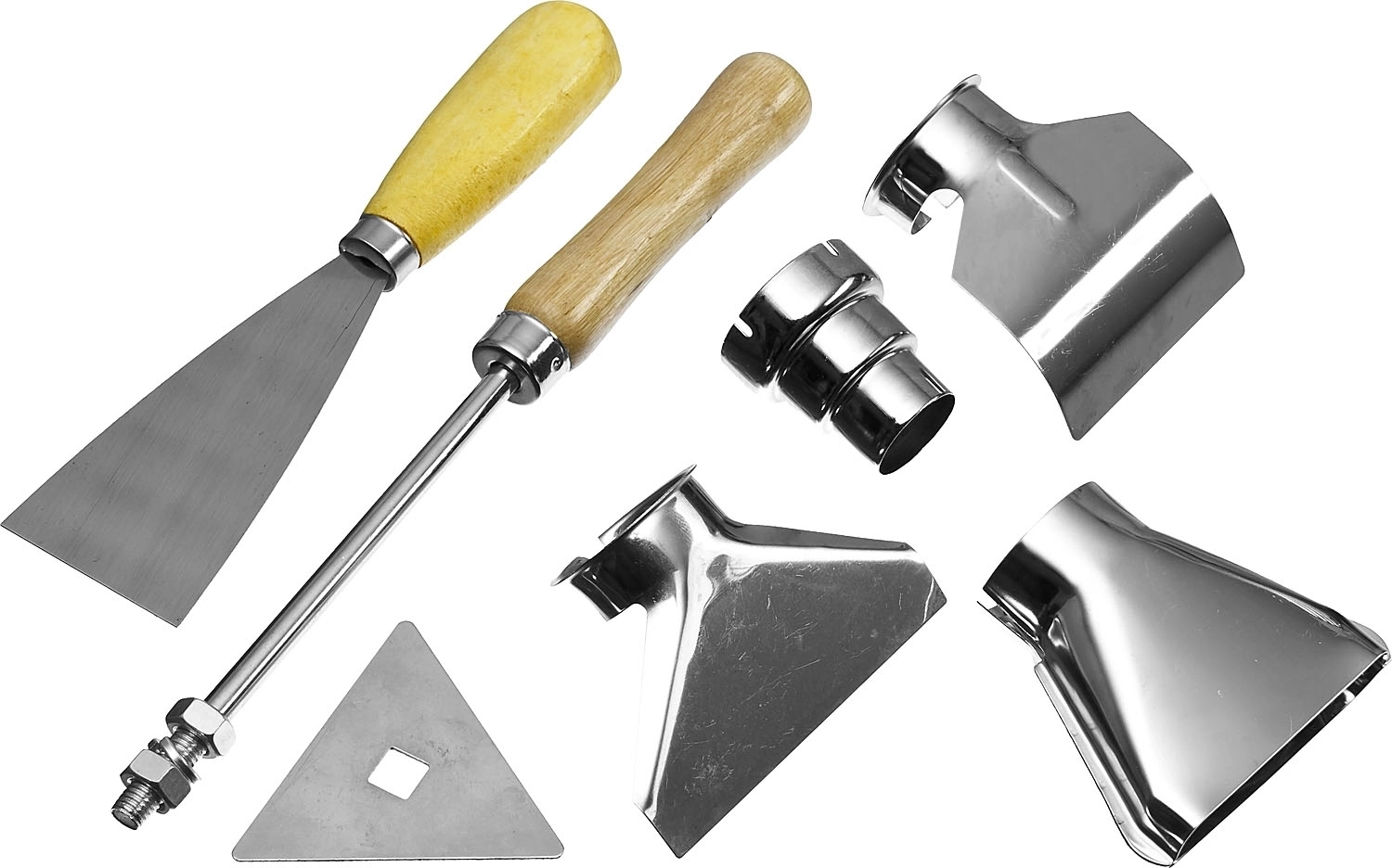 - Дополнительные шпатель и скребок расширяют спектр выполняемых работ