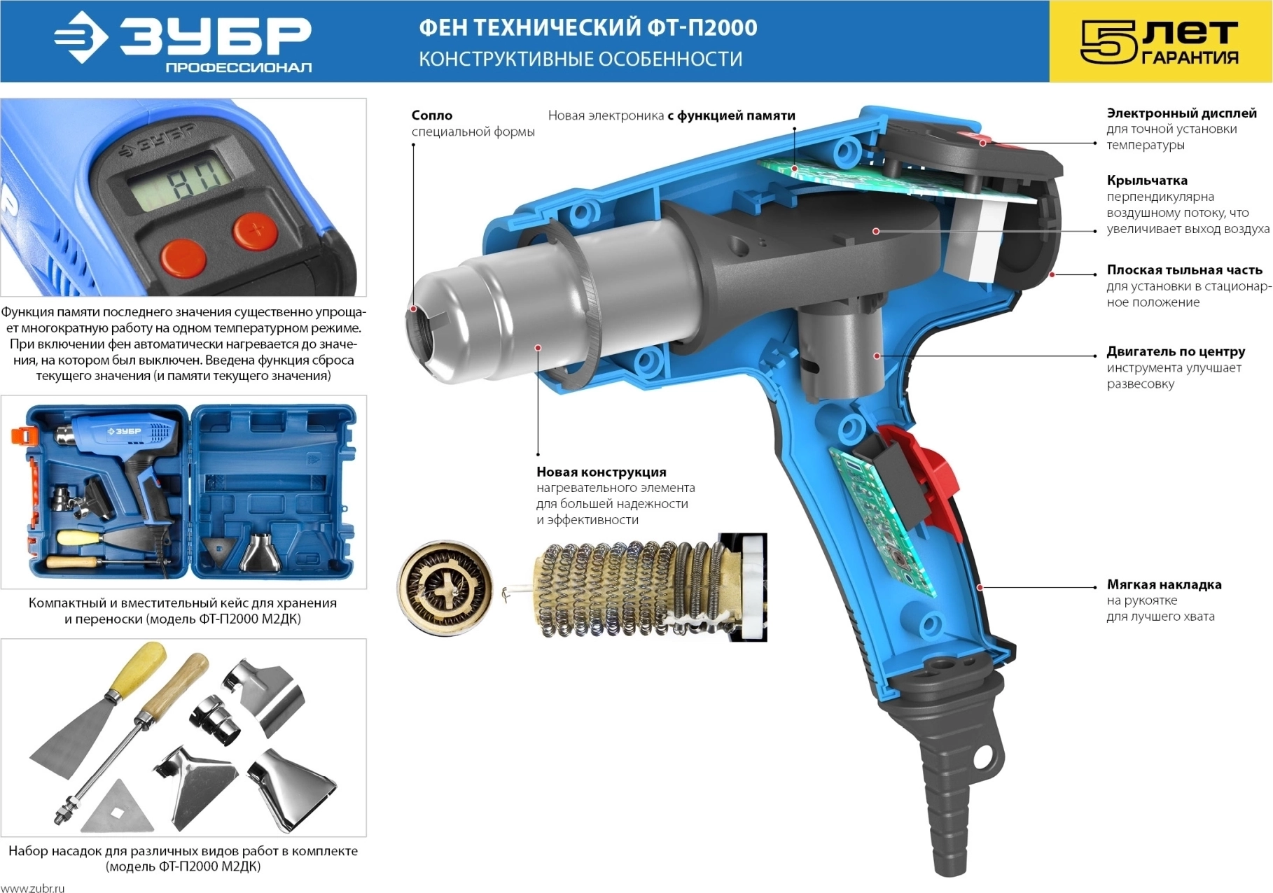 Технический фен ЗУБР 2000 Вт дисплей кейс