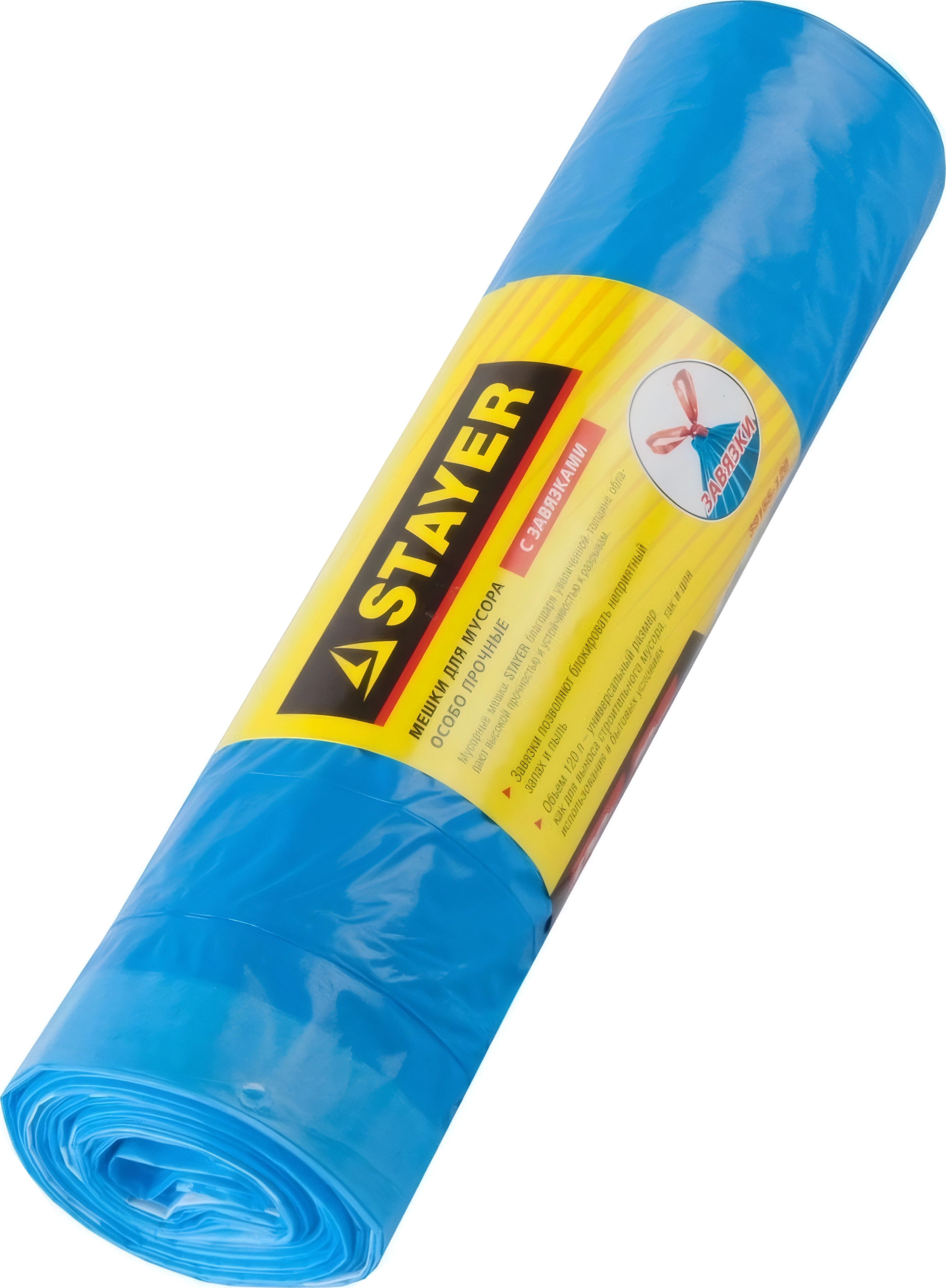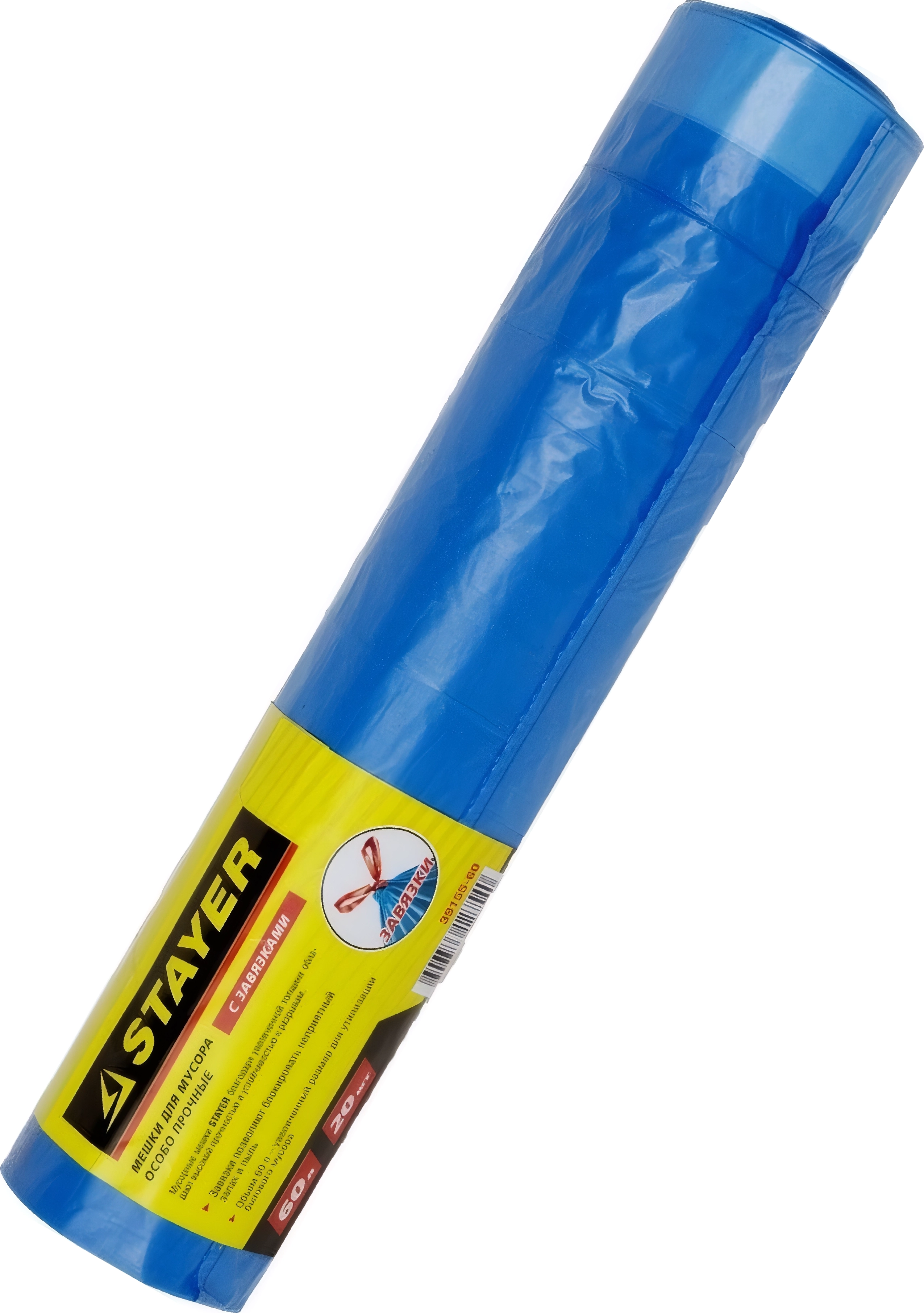 STAYER 39155-60 Мусорные мешки 60 л, 20 шт, синие, особопрочные, с завязками арт. 109434