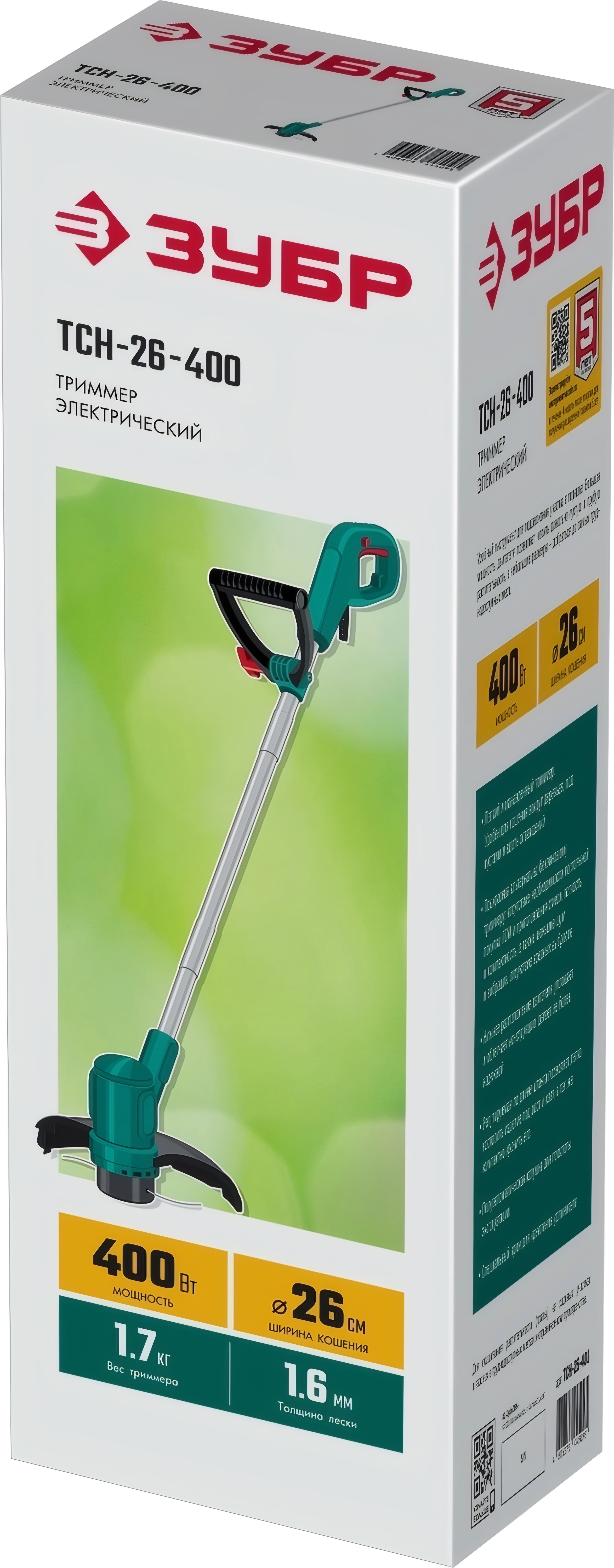 ЗУБР ТСН-26-400 Сетевой триммер 400 Вт, ш/с 26 см арт. 111397