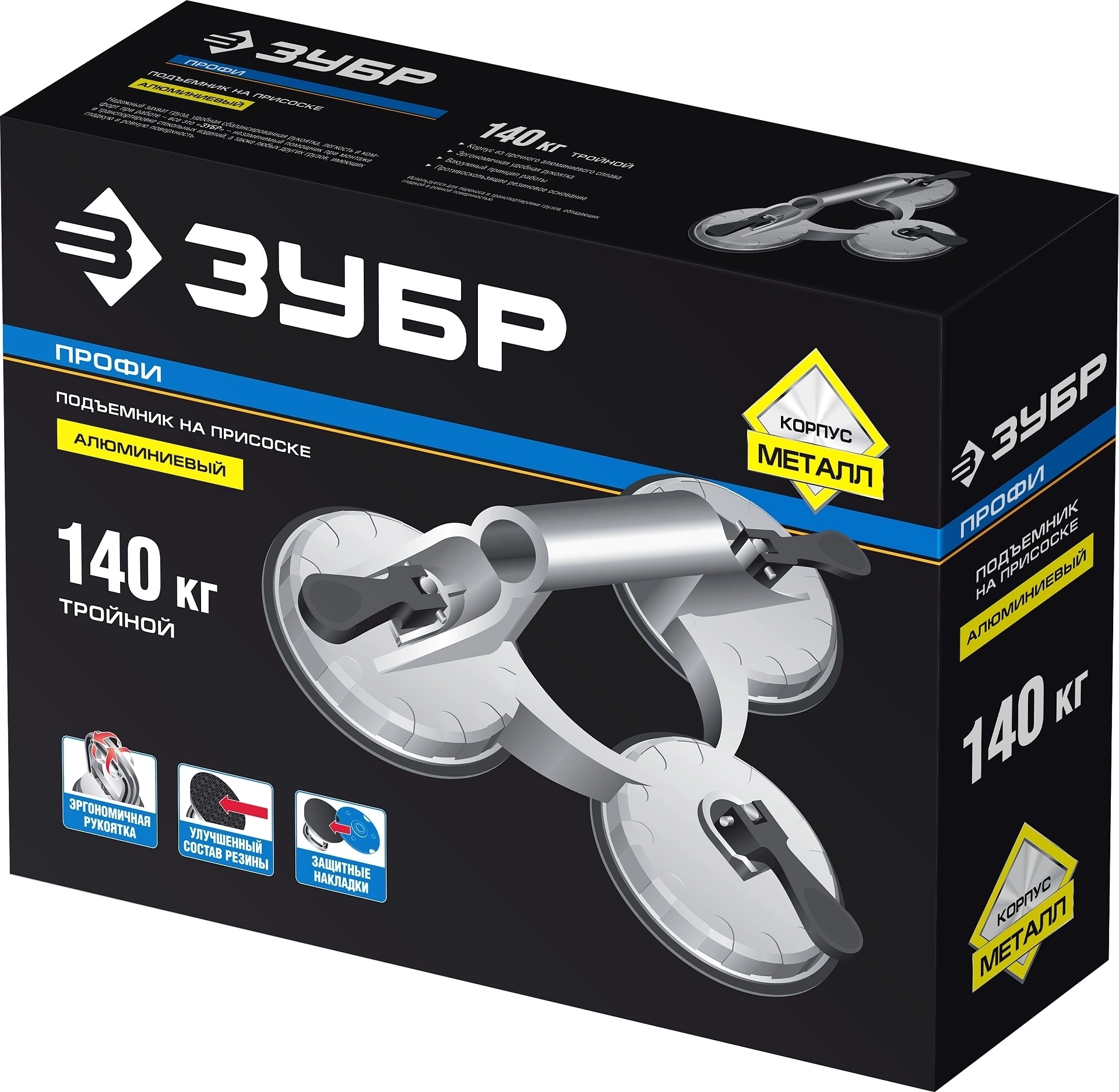 Тройной алюминиевый подъемник на присоске ЗУБР 140 кг