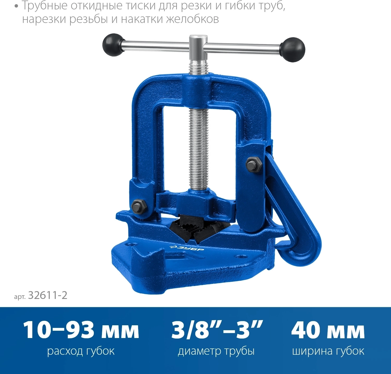 Размеры зажимаемых труб: от 10 до 93 мм, от 3/8″ до 3″