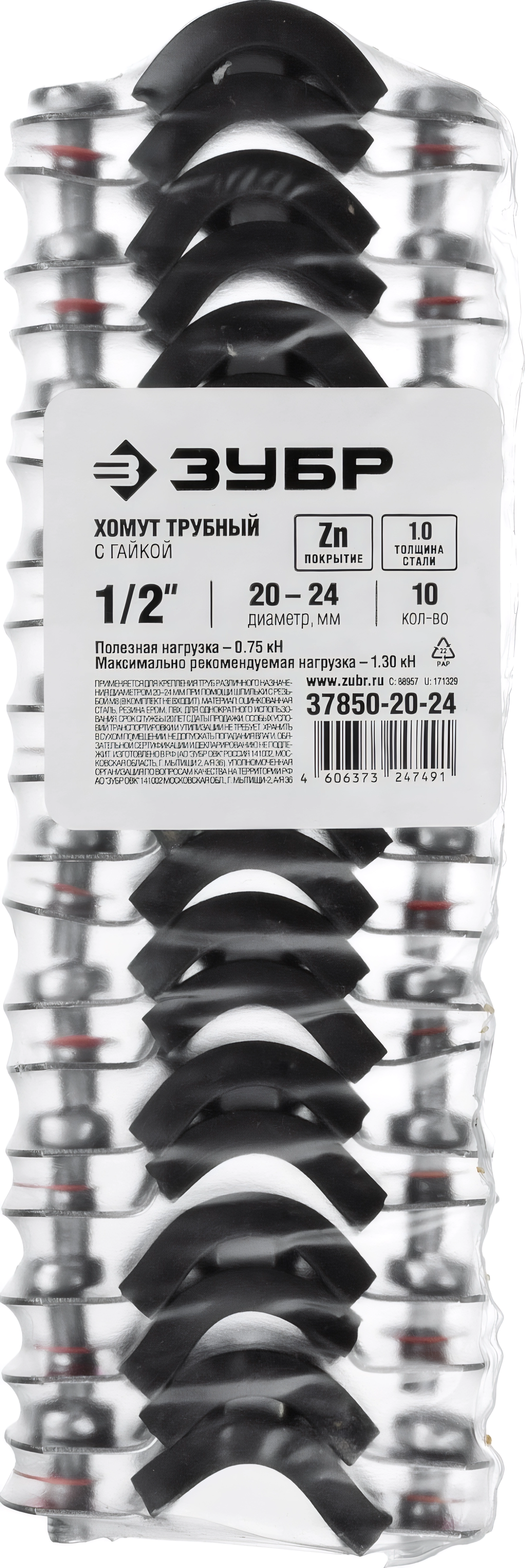 Трубный хомут с гайкой ЗУБР 1/2″, цинк, 10 шт