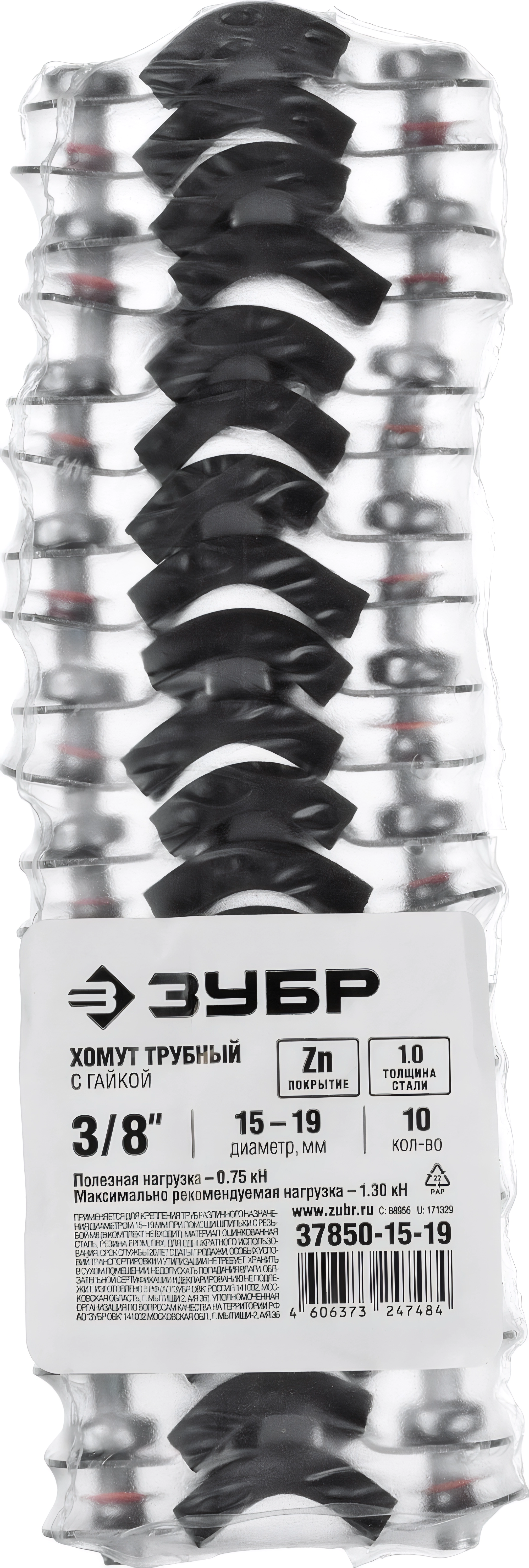 Трубный хомут с гайкой ЗУБР 3/8″, цинк, 10 шт