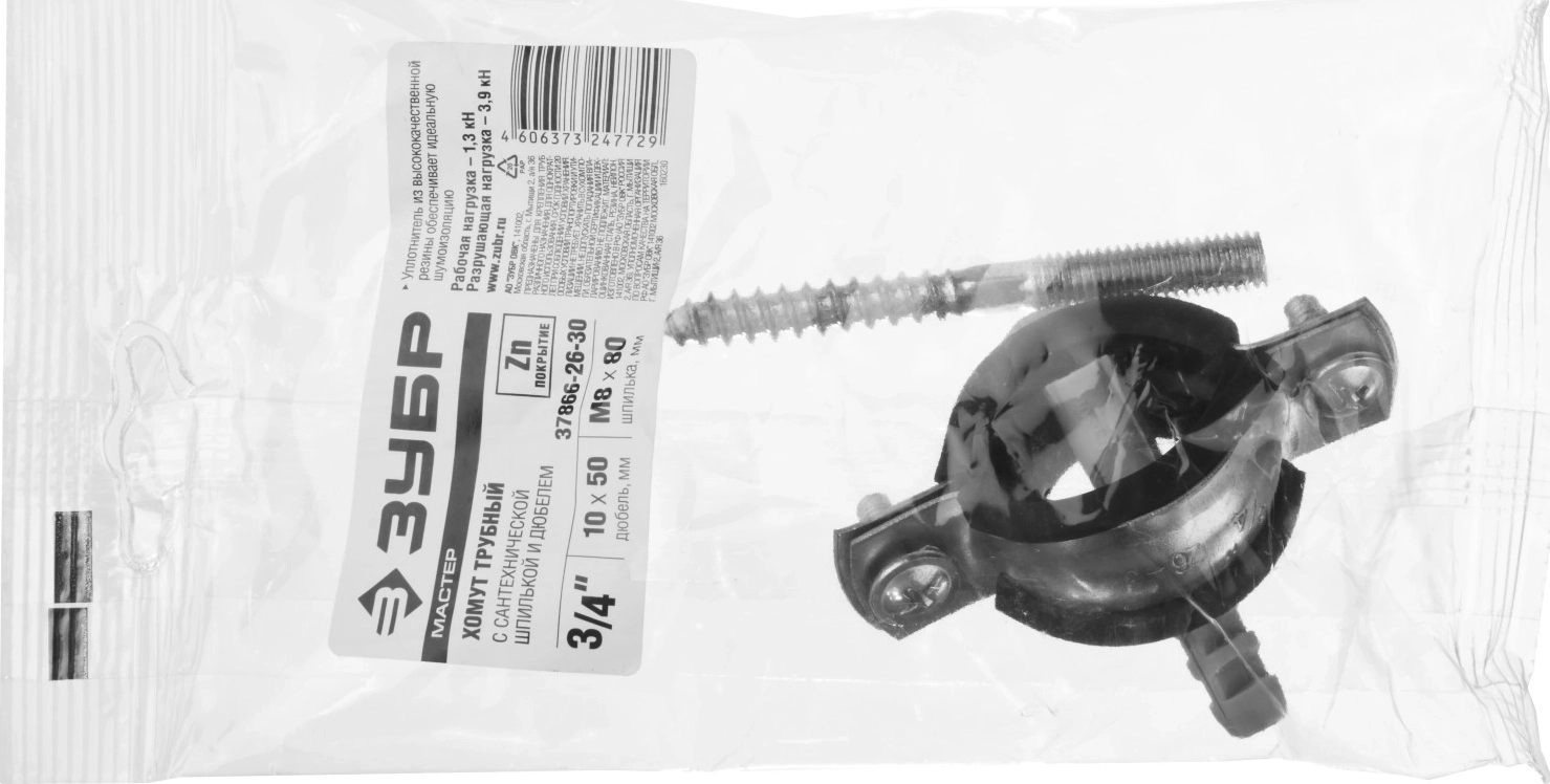 Трубный хомут с сантехнической шпилькой и дюбелем ЗУБР 3/4″