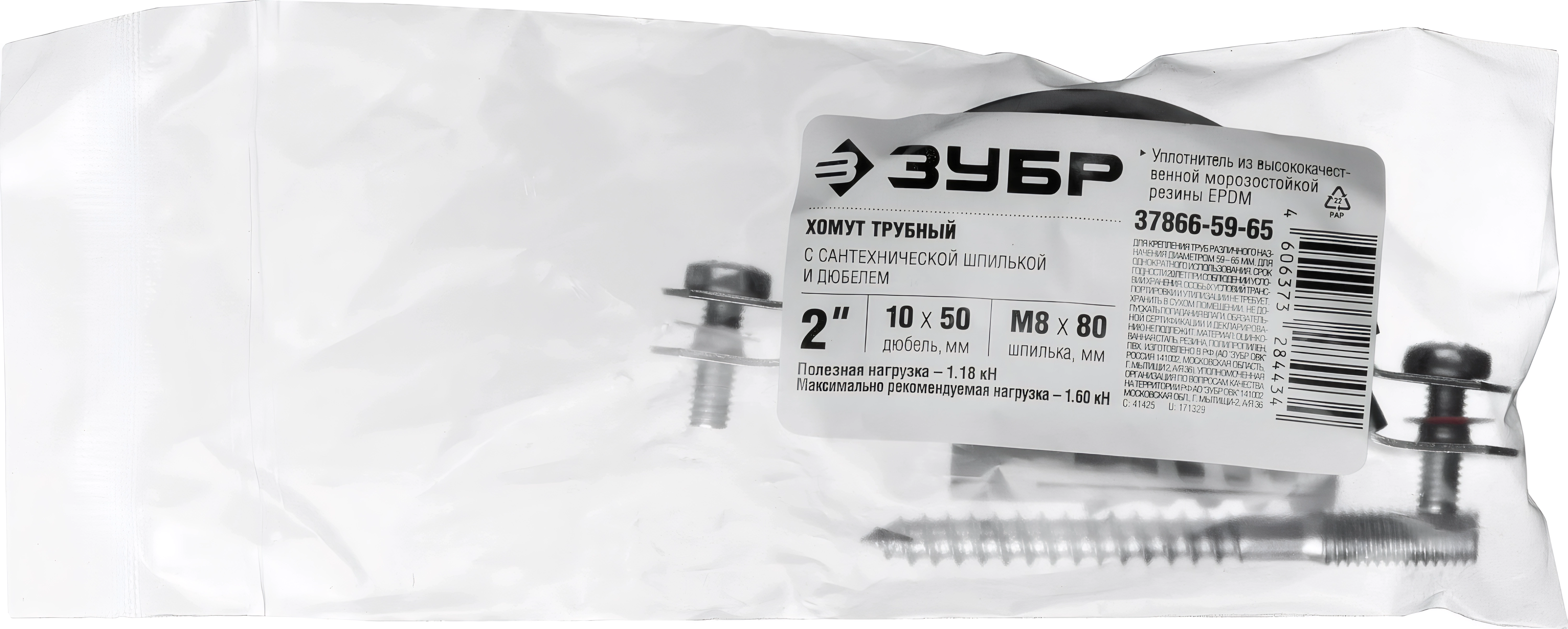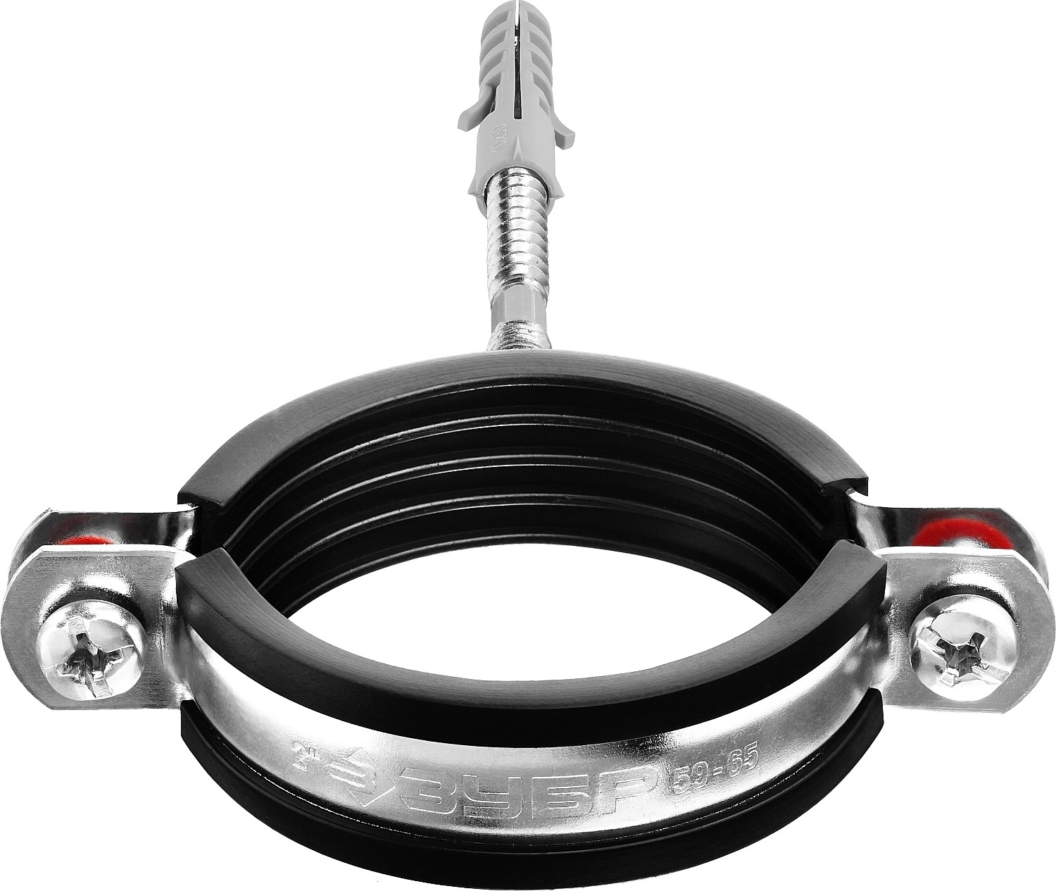 Трубный хомут с сантехнической шпилькой и дюбелем ЗУБР 2″, цинк, 1 шт