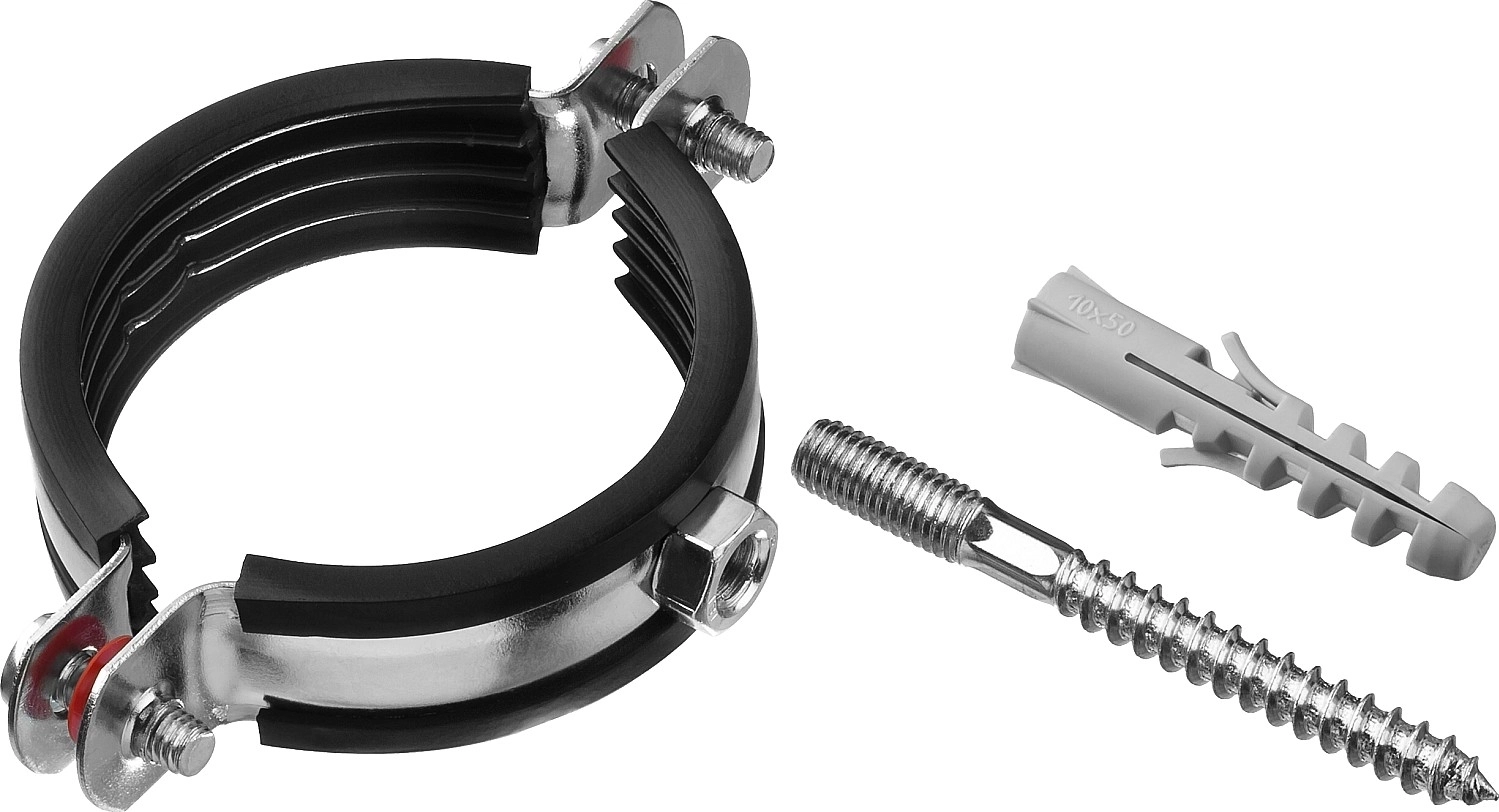 Стальные трубные хомуты способны выдерживать большие нагрузки и обеспечивают надежность крепления труб различного назначения к любым основаниям. Труба прочно фиксируется внутри хомута с помощью метрических винтов. Уплотнитель из высококачественной резины обеспечивает идеальную шумоизоляцию. Ширина ленты хомута составляет 20 мм.