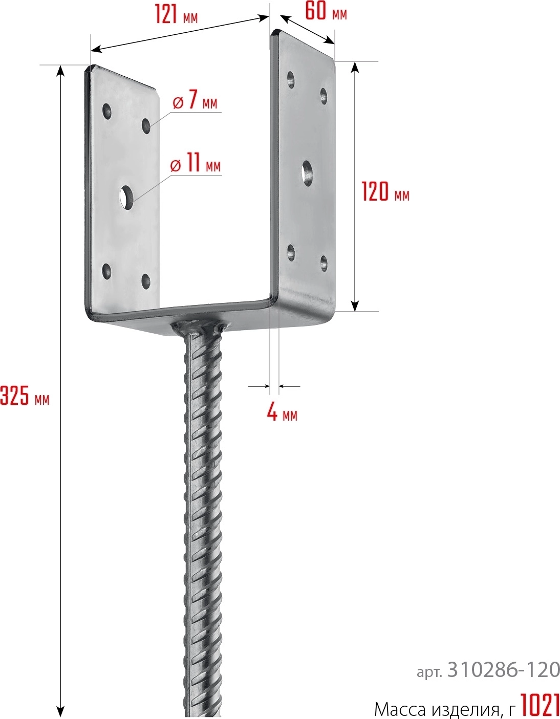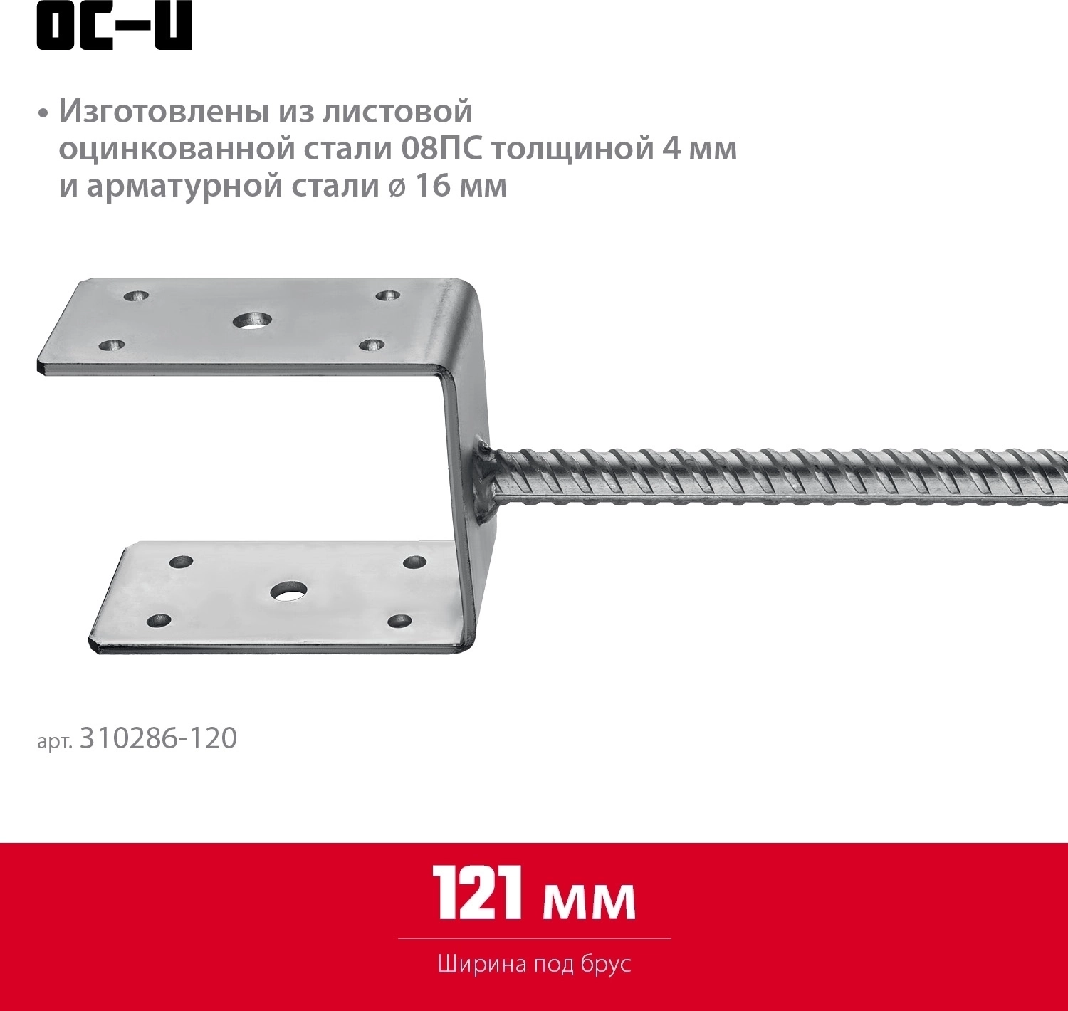 U-образное основание столба ЗУБР ОС-U 121 x 120 x 60 мм