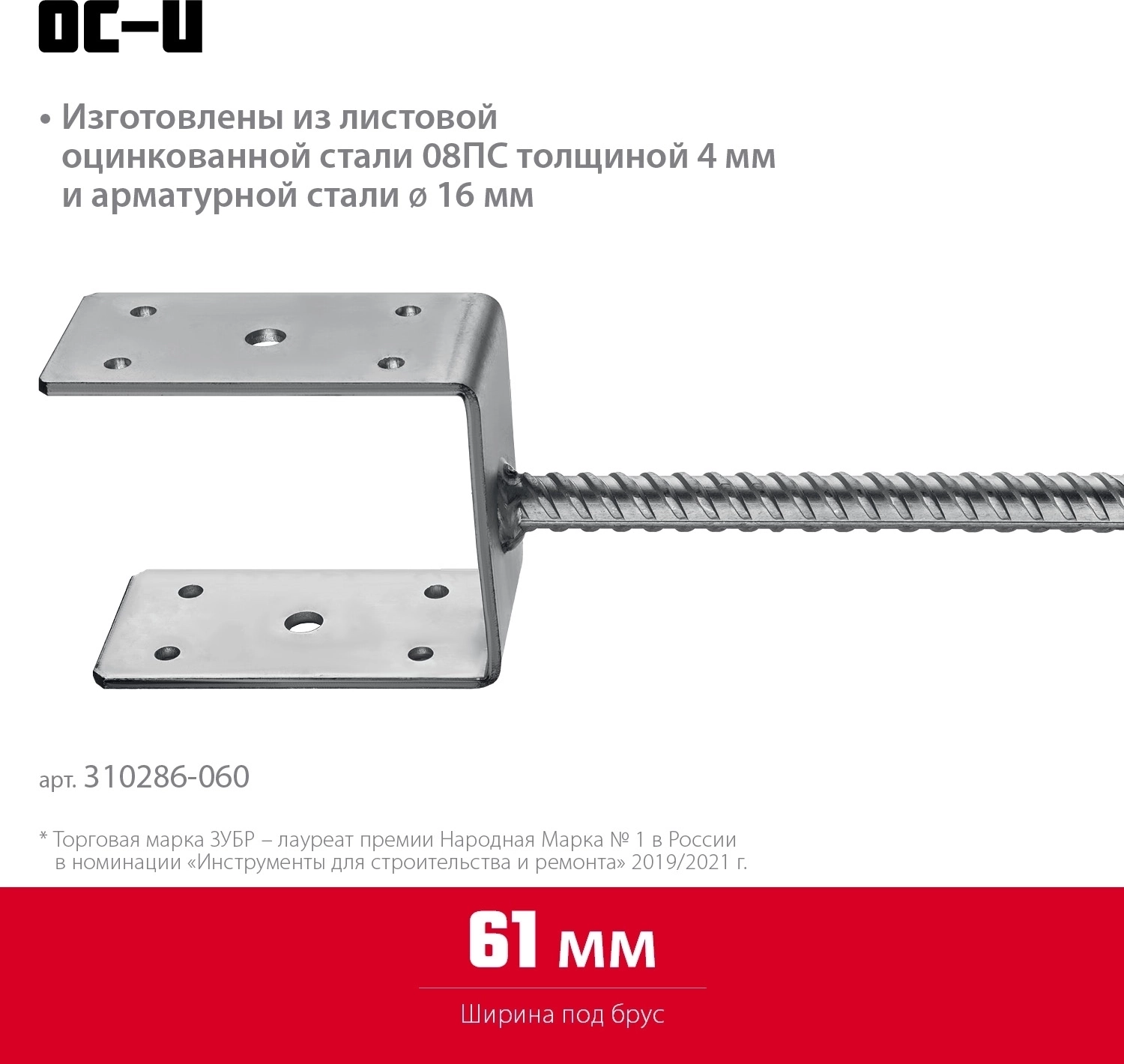 U-образное основание столба ЗУБР ОС-U 61 x 120 x 60 мм