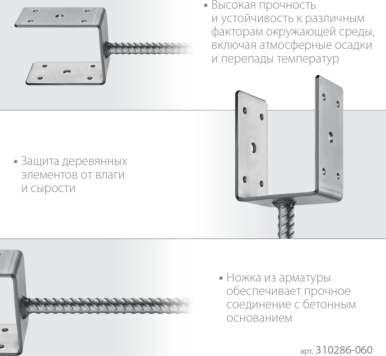 - Ножка из арматуры обеспечивает прочное соединение с бетонным основанием
