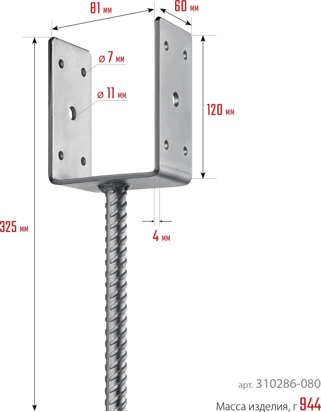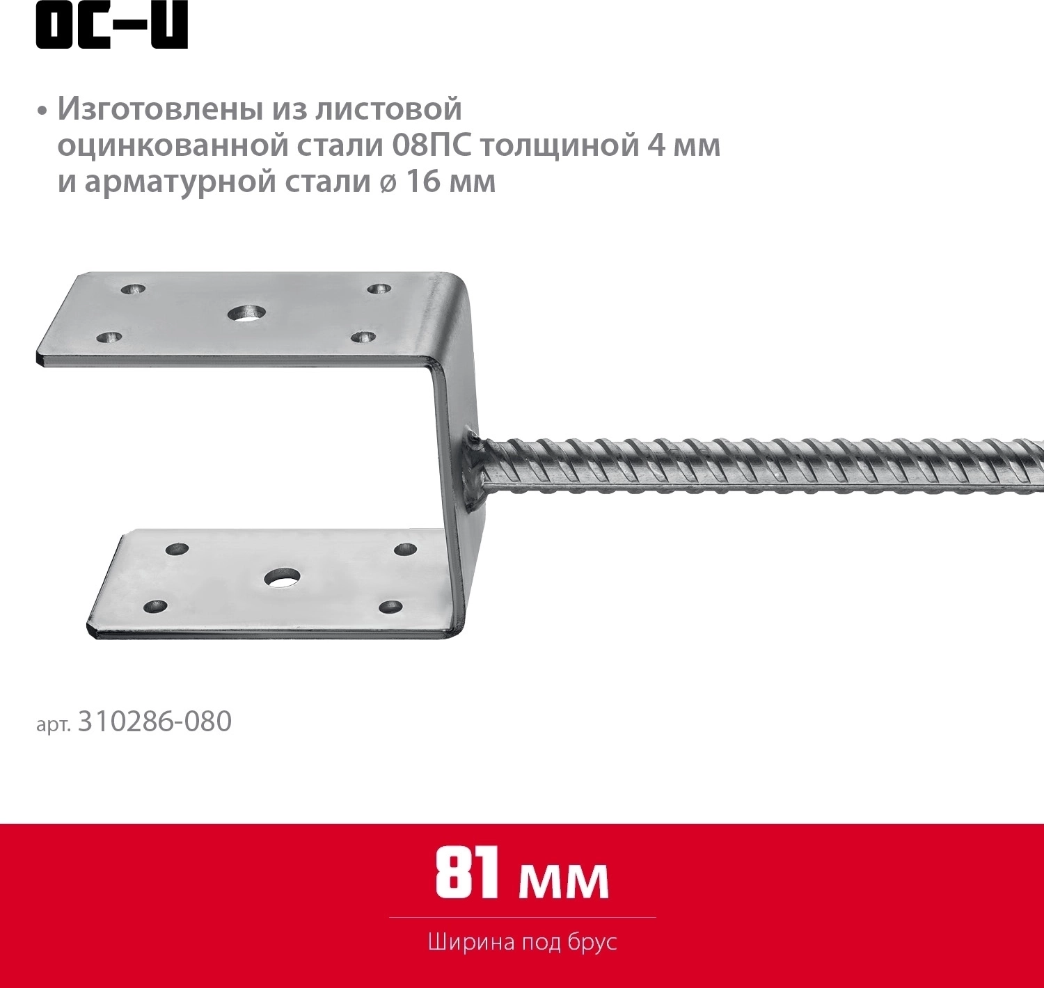 U-образное основание столба ЗУБР ОС-U 81 x 120 x 60 мм