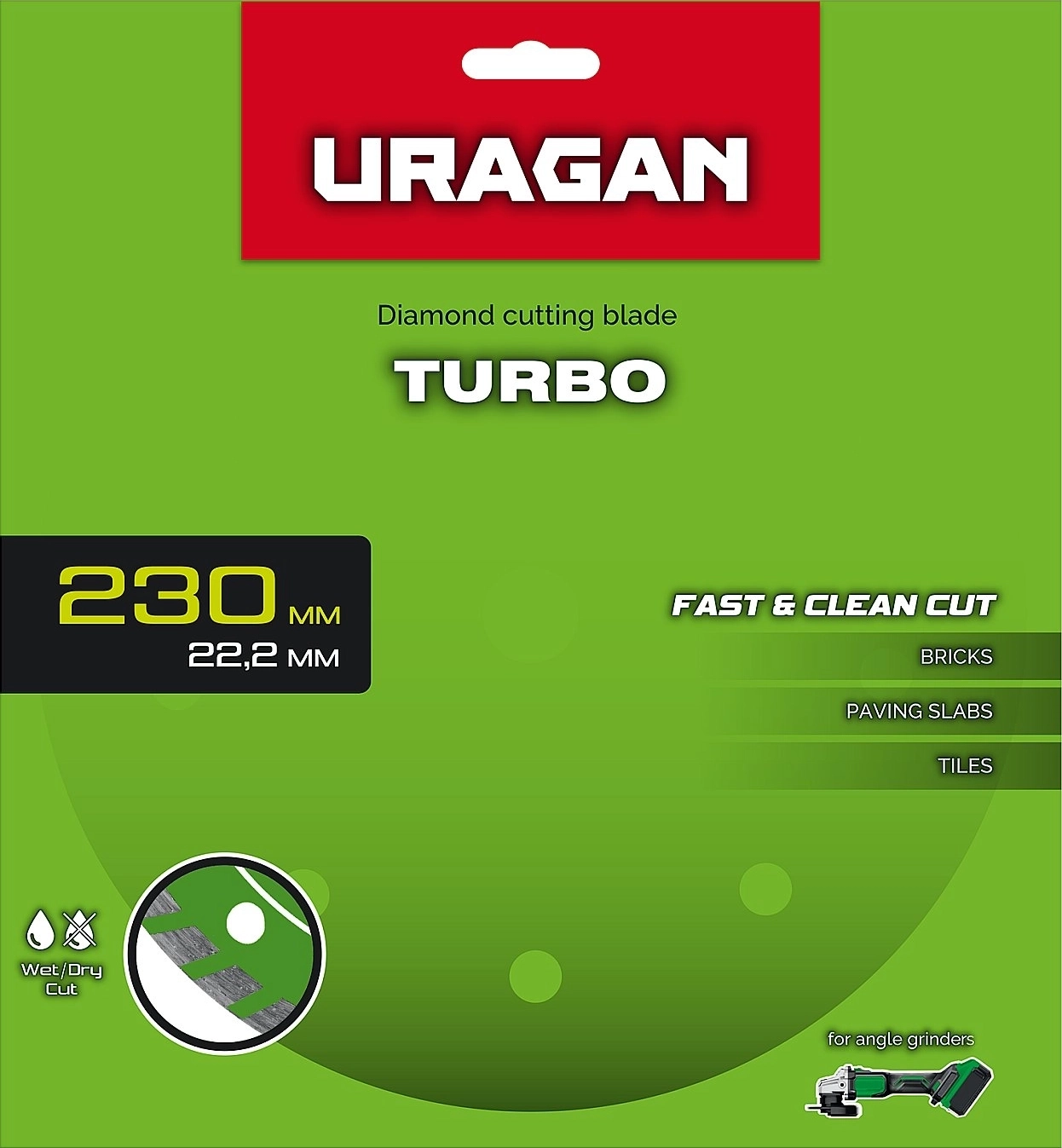 - Турбо-сегментированная форма режущей кромки позволяет быстро и эффективно осуществлять необходимые резы в обрабатываемом материале.
