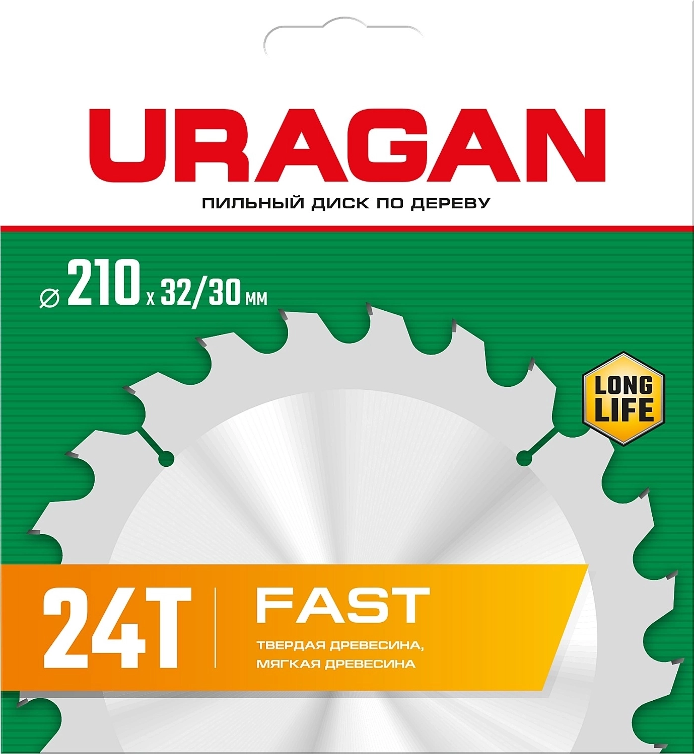 Пильный диск по дереву URAGAN Fast, 210 х 32/30 мм, 24Т