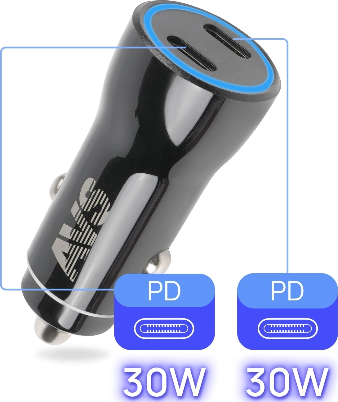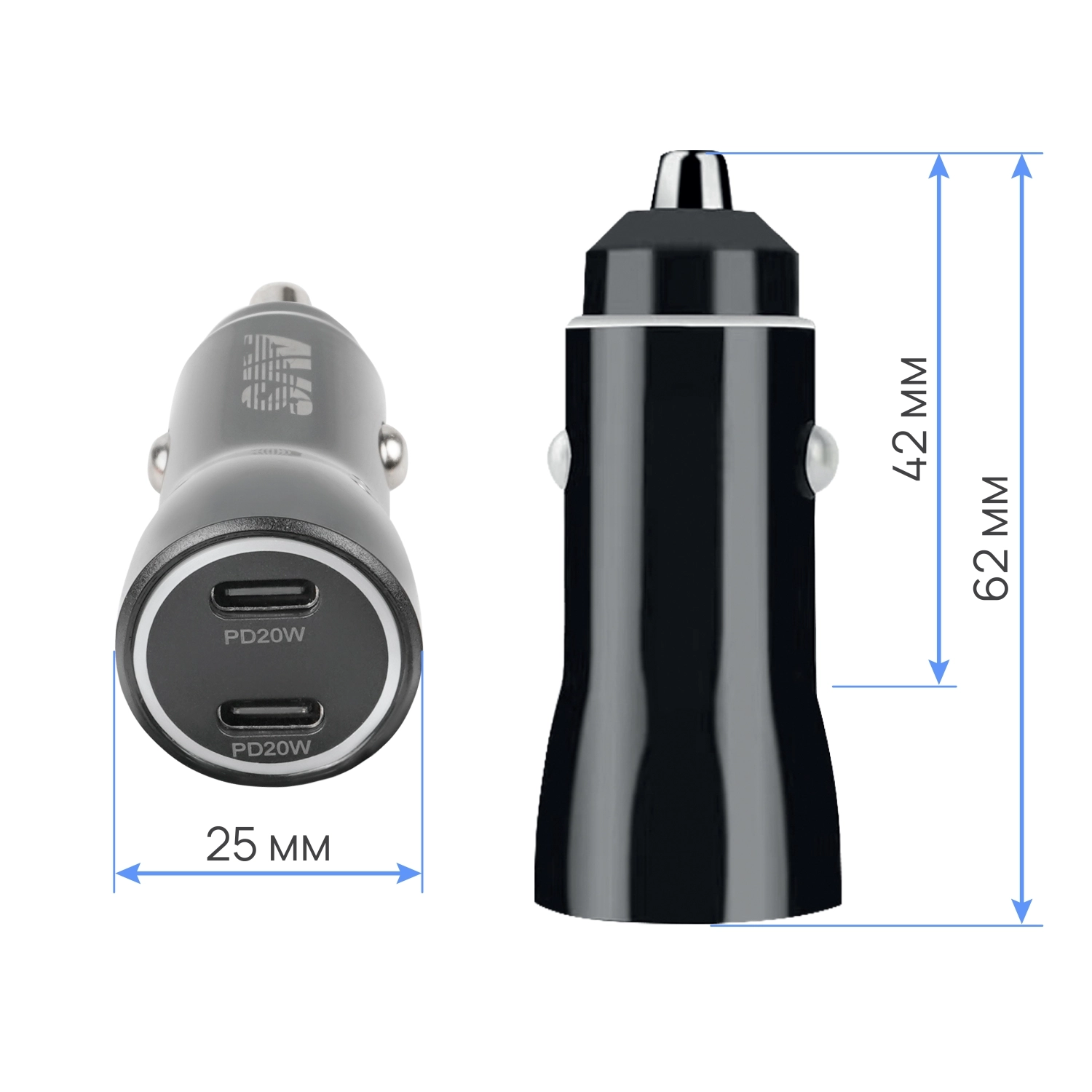 USB автомобильное зарядное устройство AVS 2 порта UC-740 (PD Type C 40W)