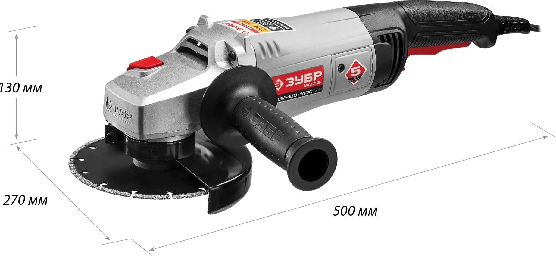 УШМ ЗУБР 1400 Вт, d150 мм