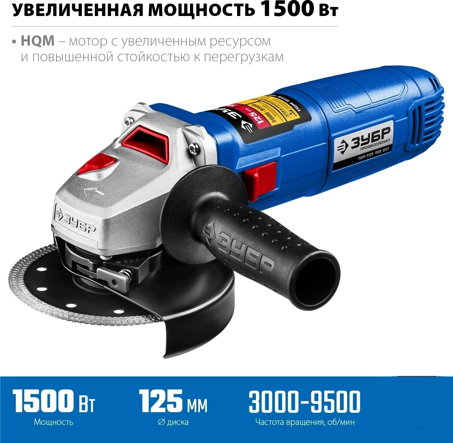 УШМ ЗУБР 1500 Вт d125 мм регулировка оборотов