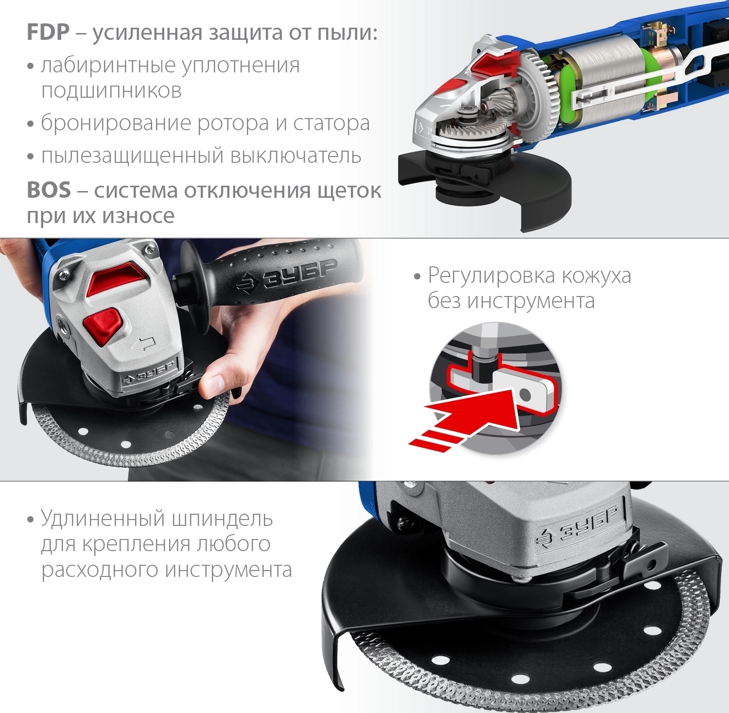 - Компактная, и одна из самых мощных среди одноручных моделей в ассортименте ЗУБР. Способна работать с отрезными, шлифовальными, алмазными дисками, щетками-крацовками всех видов, а также алмазными чашками