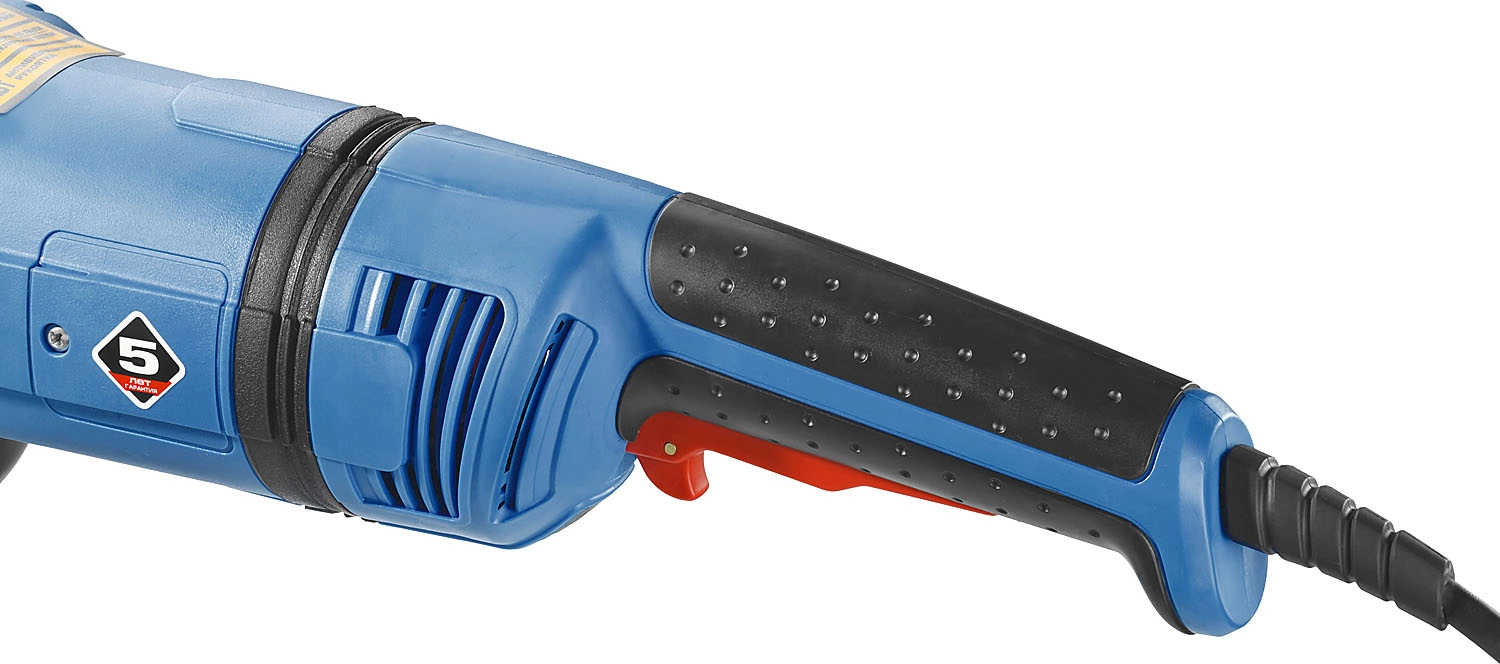 - Широкий эргономичный выключатель с пылезащитой, блокировкой непреднамеренного включения, а также фиксацией во включенном положении