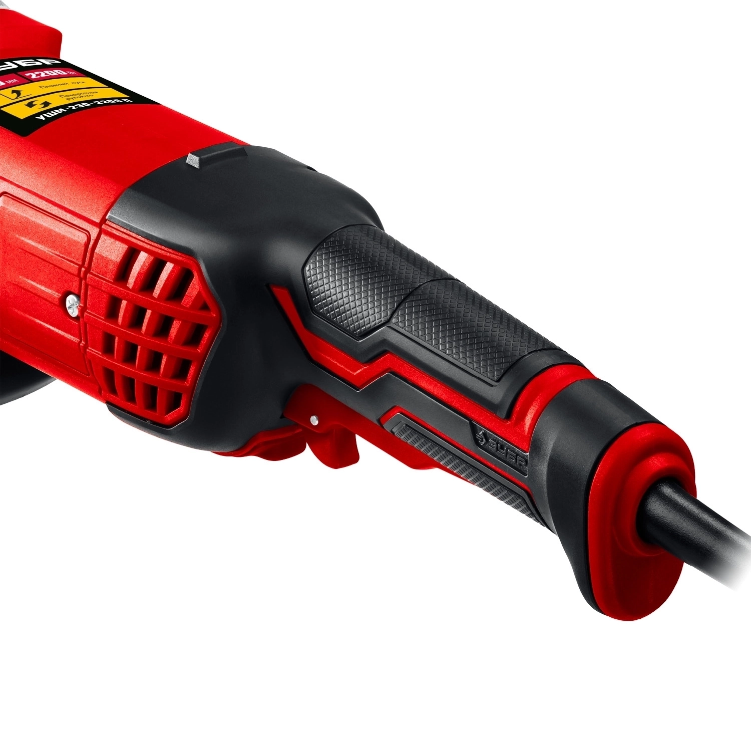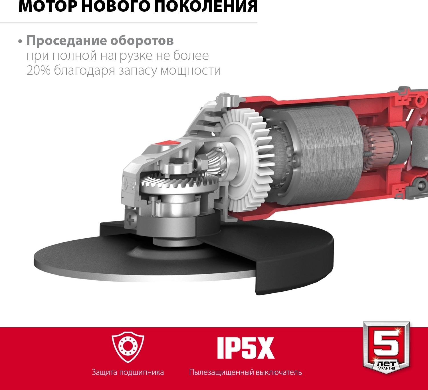 - Широкий эргономичный выключатель с пылезащитой, блокировкой непреднамеренного включения, а также фиксацией во включенном положении