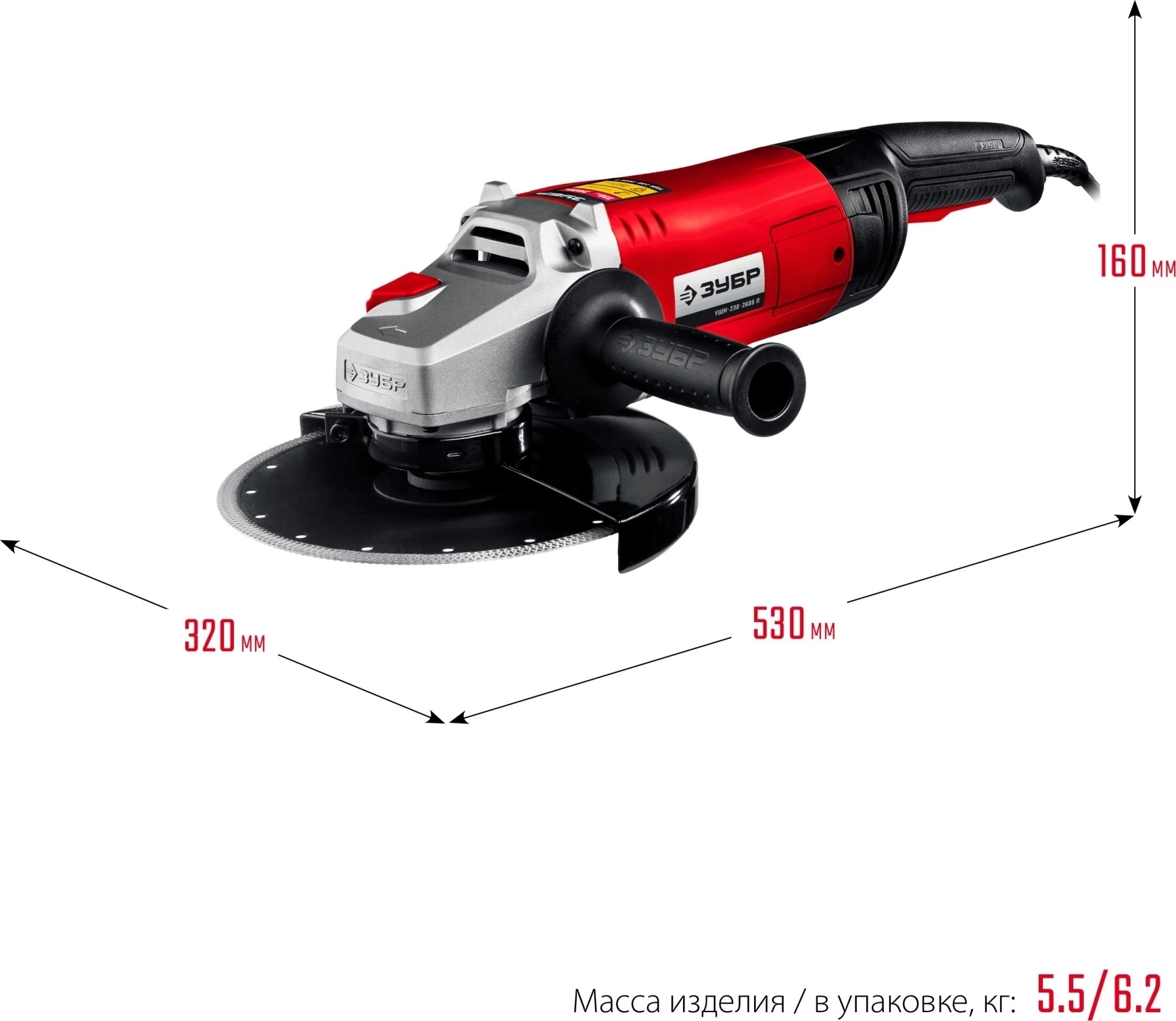 УШМ ЗУБР 2400 Вт, d230 мм