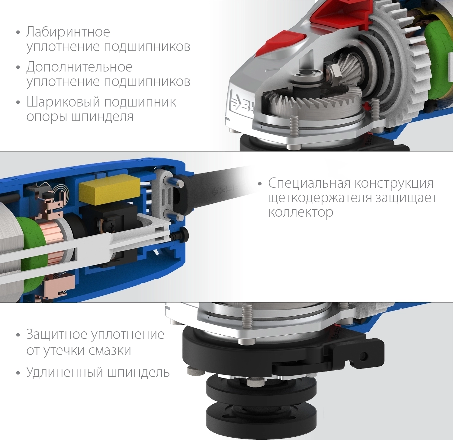 - лабиринтное уплотнение всех шариковых подшипников создает непроницаемый для пыли воздушный барьер - Специально разработанный корпус редуктора для улучшения теплоотвода и обеспечения прочности самого нагруженного узла