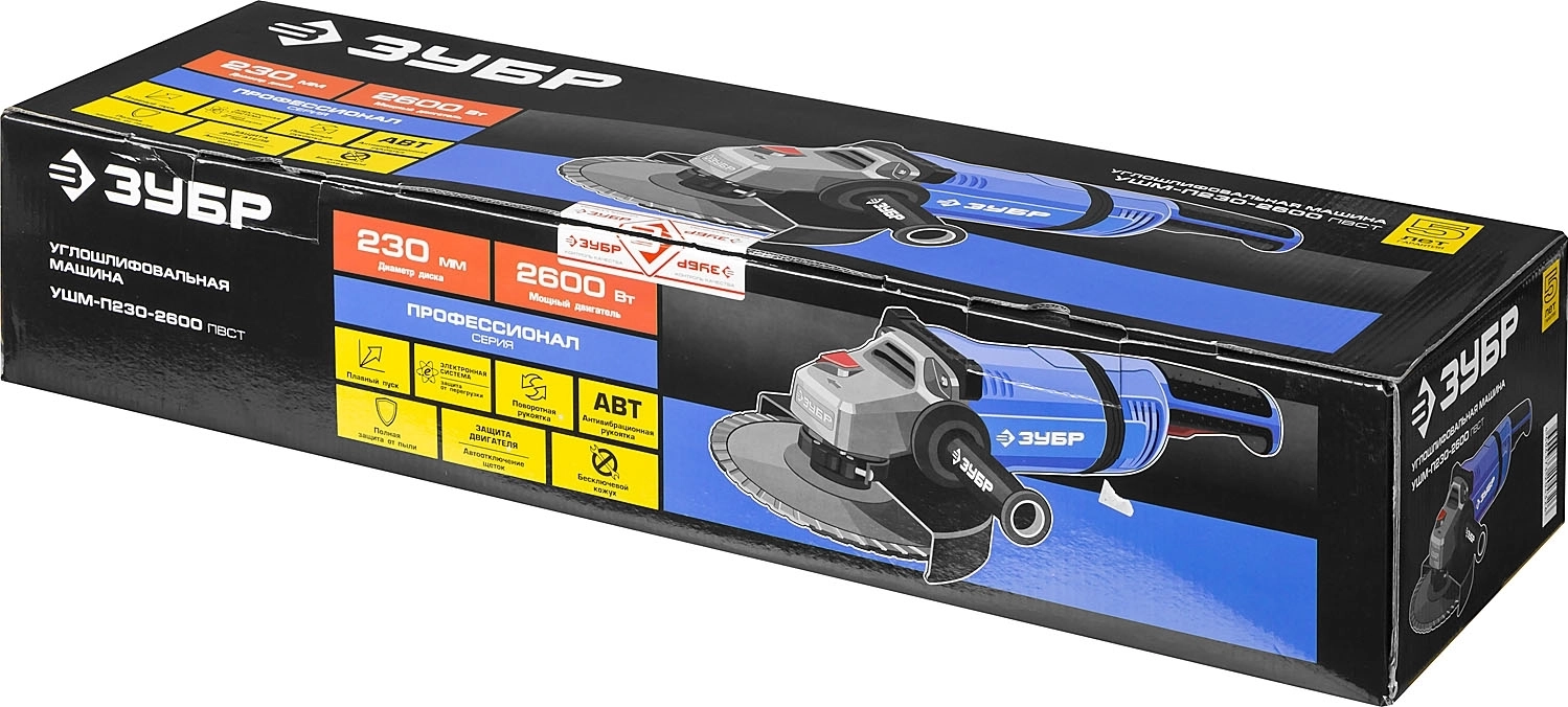 УШМ ЗУБР Профессионал УШМ-П230-2600ПВ, 2600Вт, d230 мм, АВТ