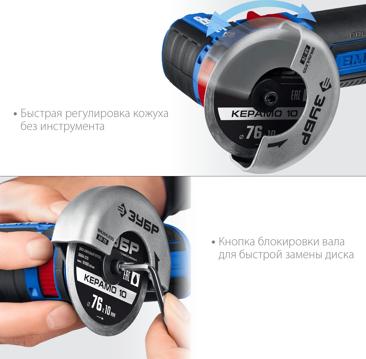 - защита от перегрузки предохраняет оператора и изделие при заклинивании диска,