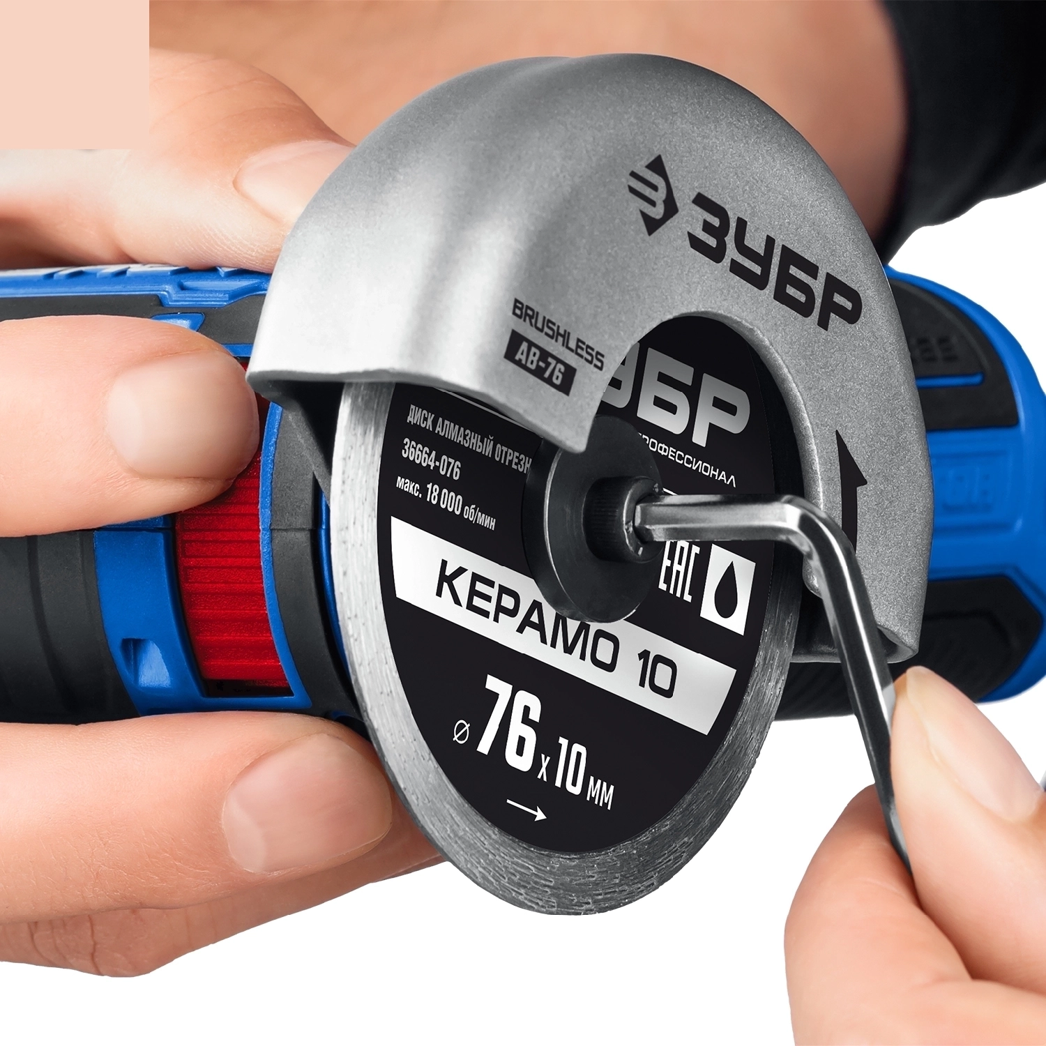 УШМ бесщеточная ЗУБР 12 В d76 мм без АКБ тип Т7