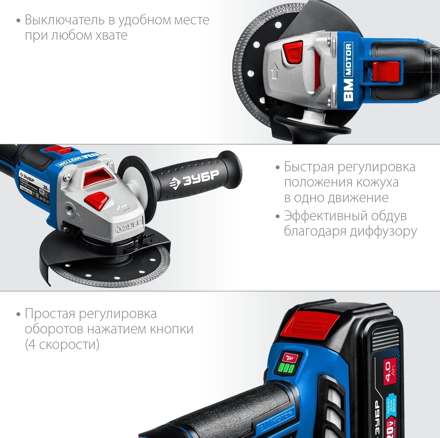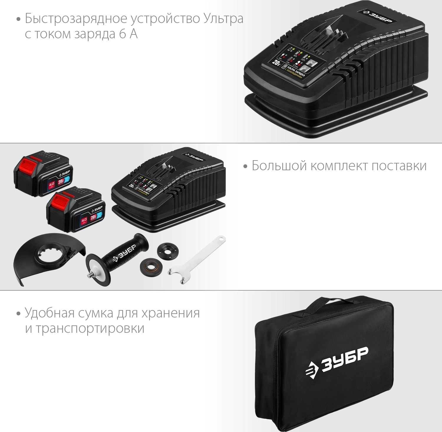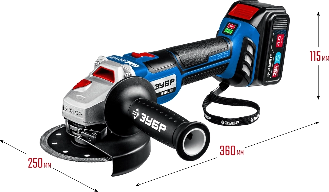 УШМ бесщеточная ЗУБР Т7 20 В 125 мм 2 АКБ 4 А·ч сумка