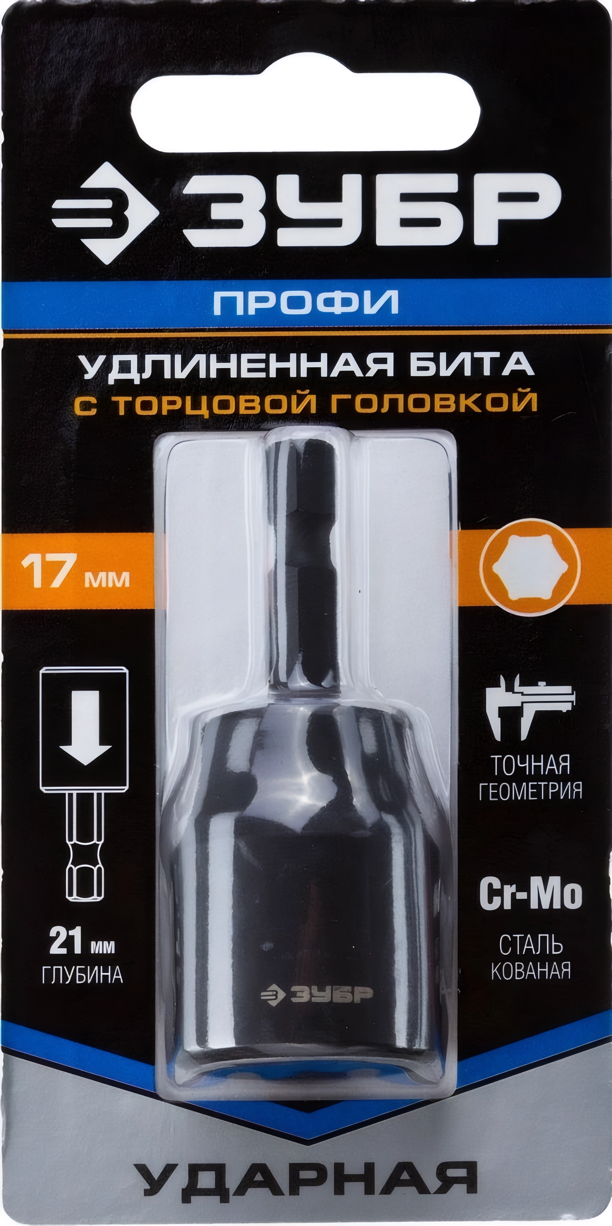 Ударная бита с торцевой головкой ЗУБР 17 мм 60 мм удлиненная