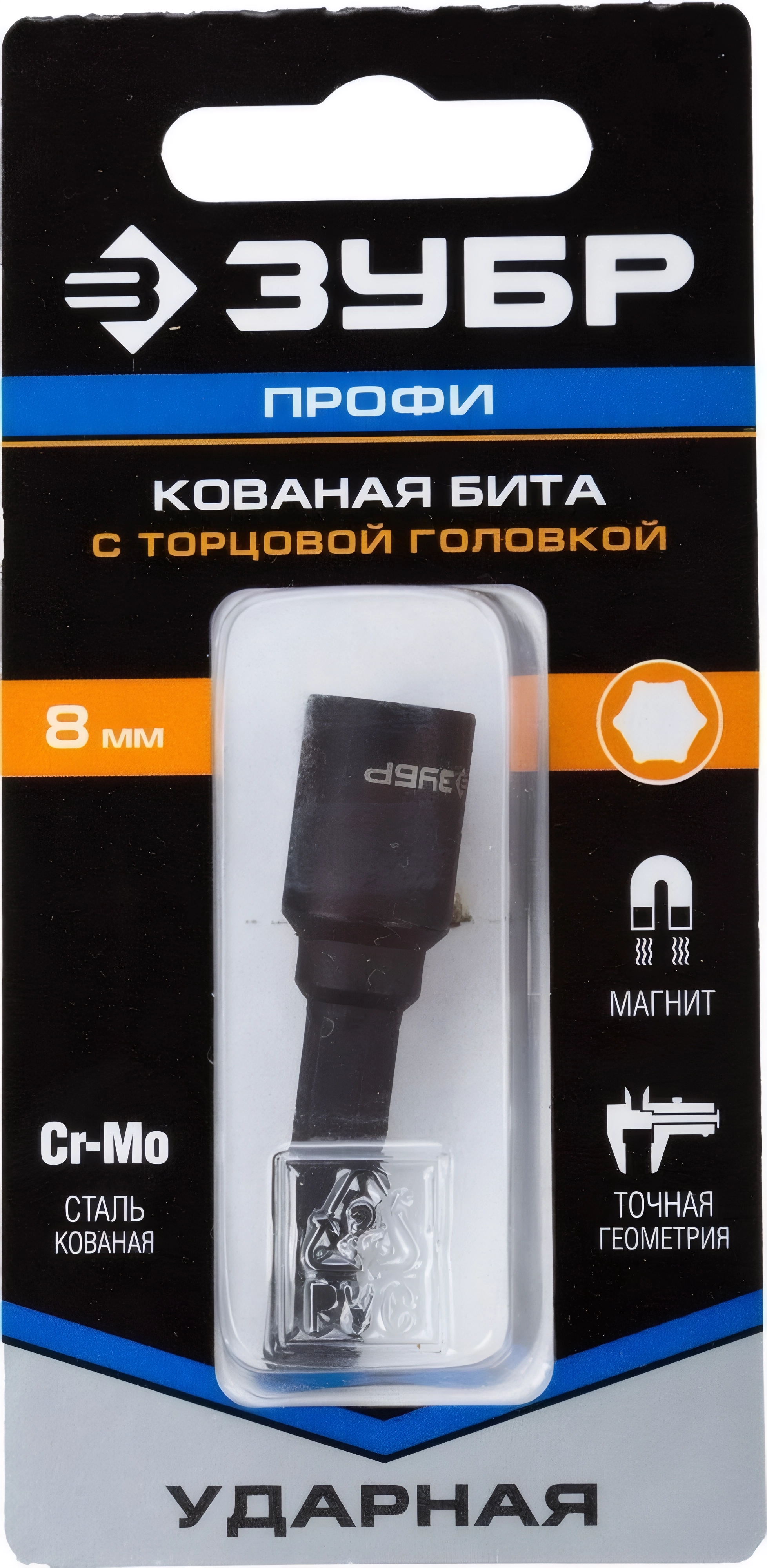 Ударная бита с торцевой головкой ЗУБР 8 мм 50 мм магнитная