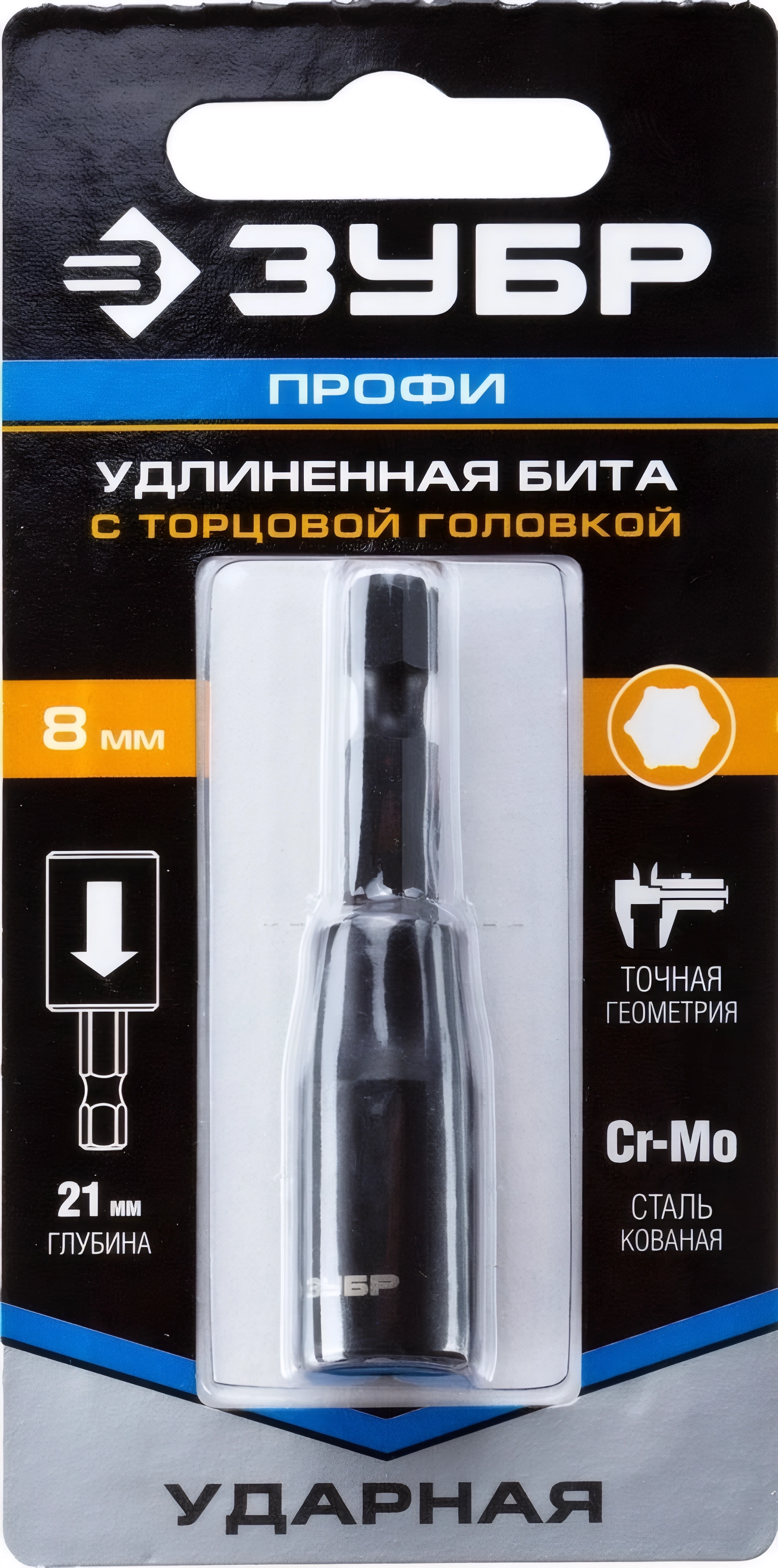 Ударная бита с торцевой головкой ЗУБР 8 мм 60 мм удлиненная