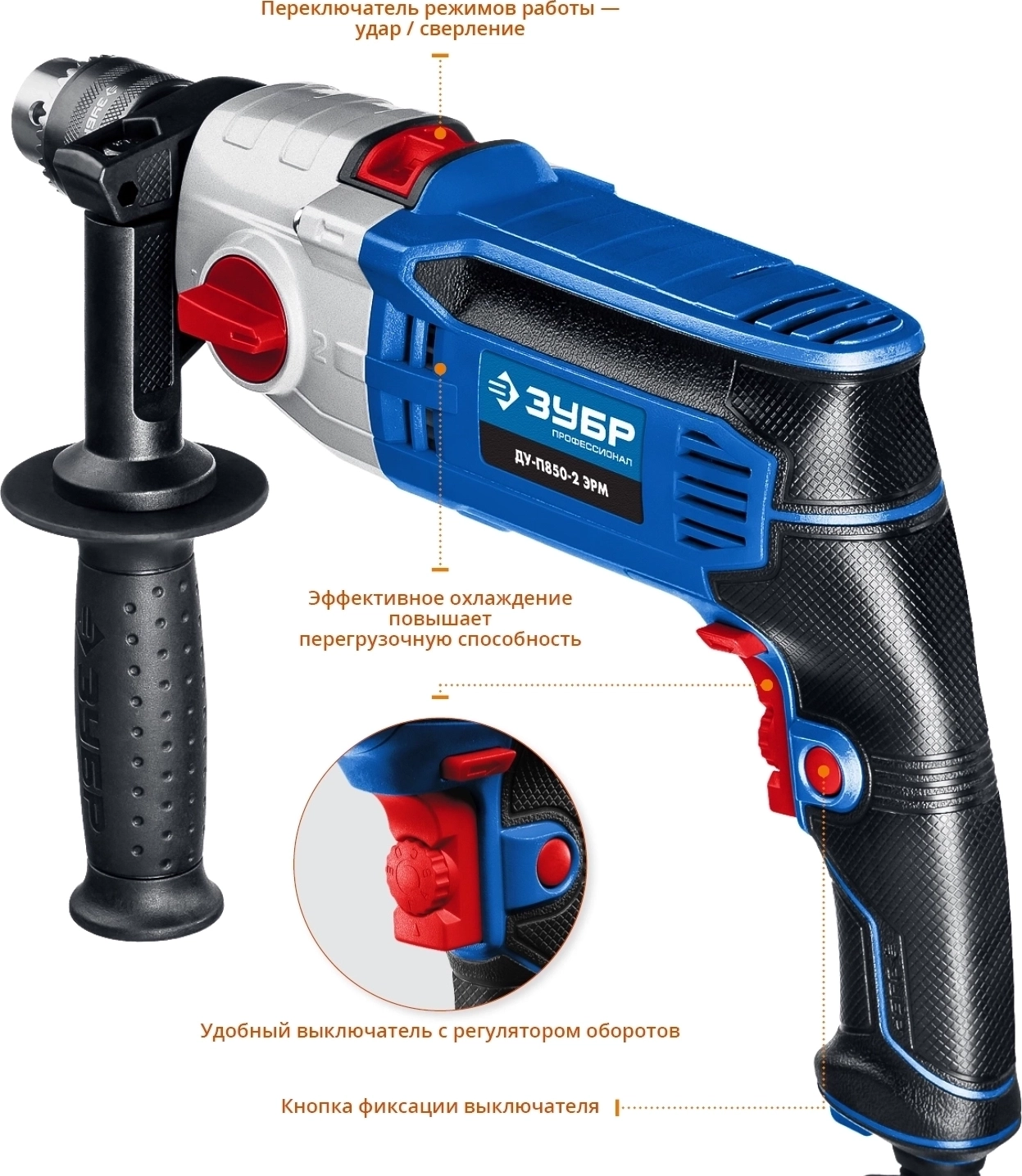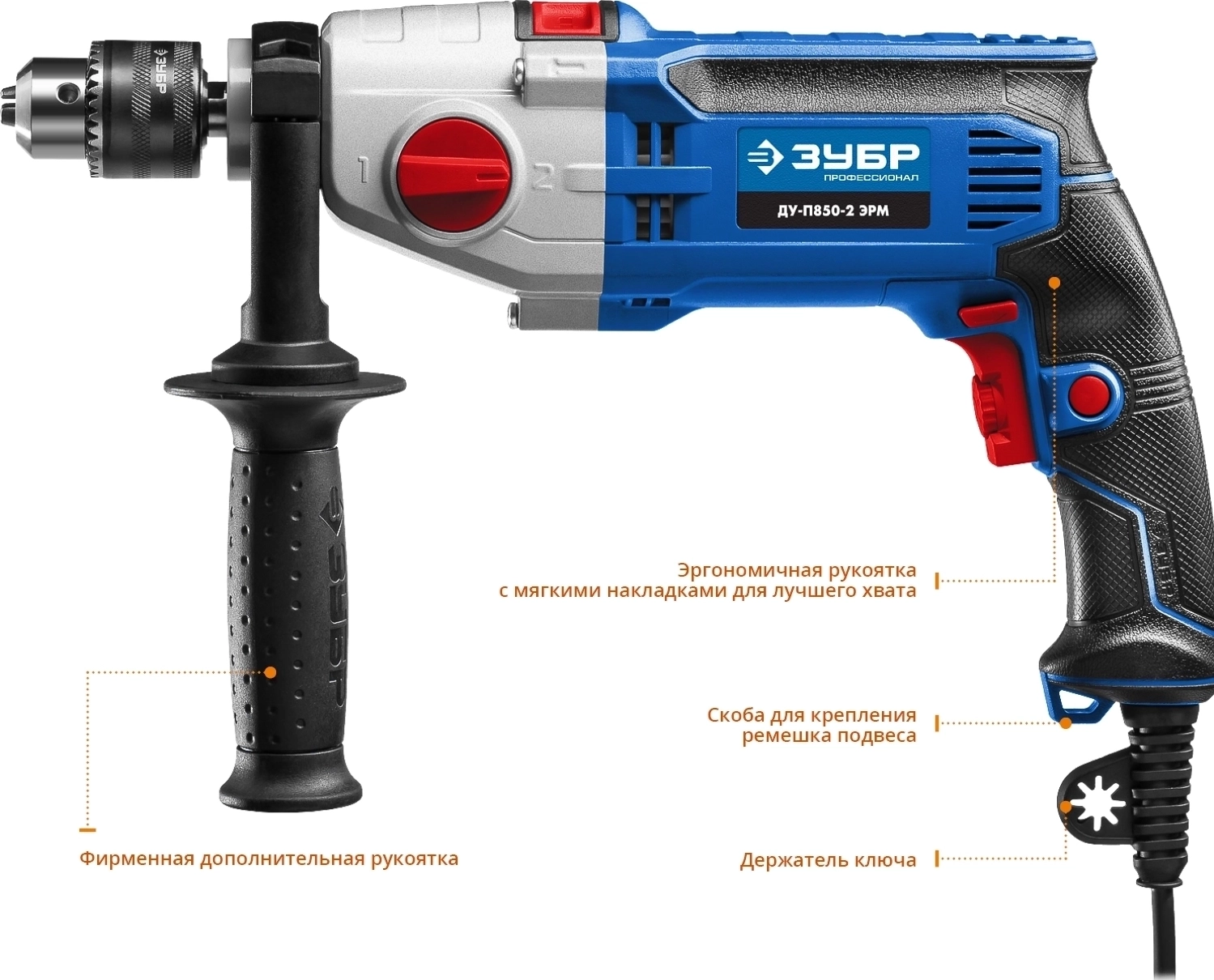 Ударная дрель ЗУБР ДУ-П850 ЭРМ 850 Вт 13 мм 2 скорости мет. корпус