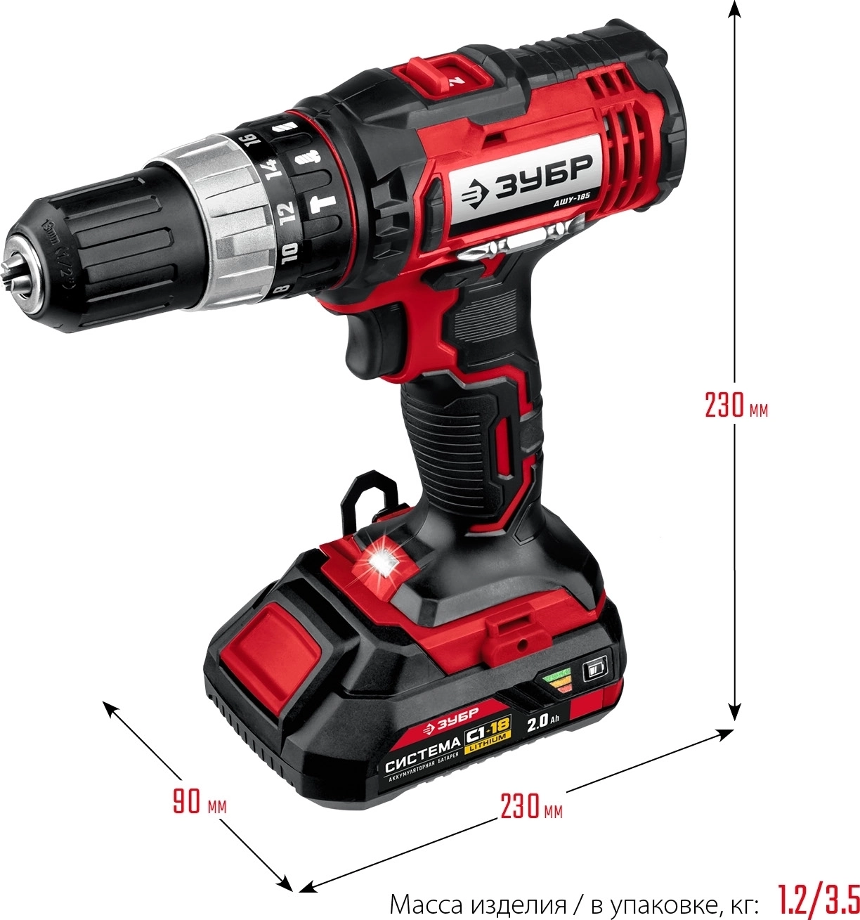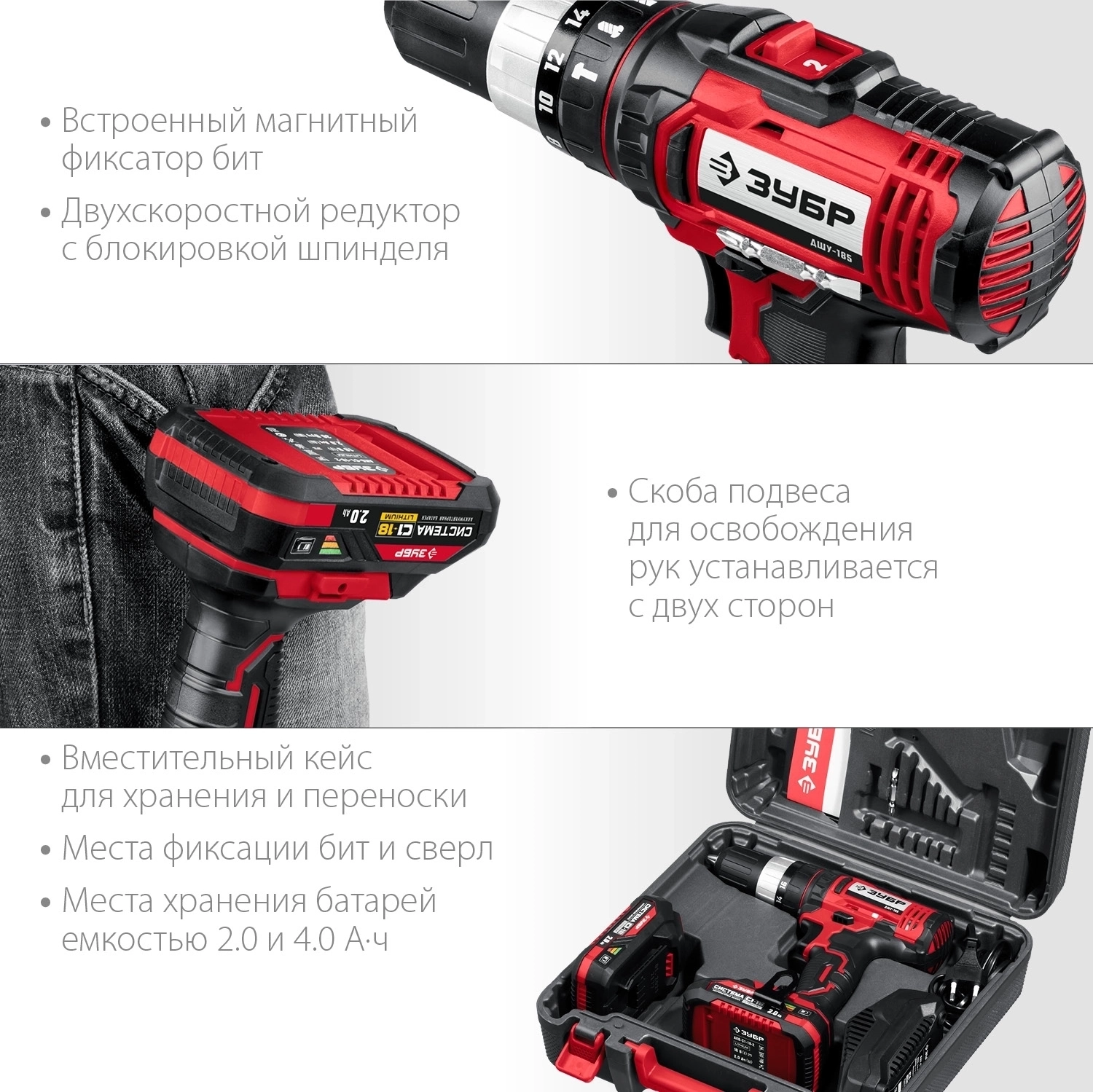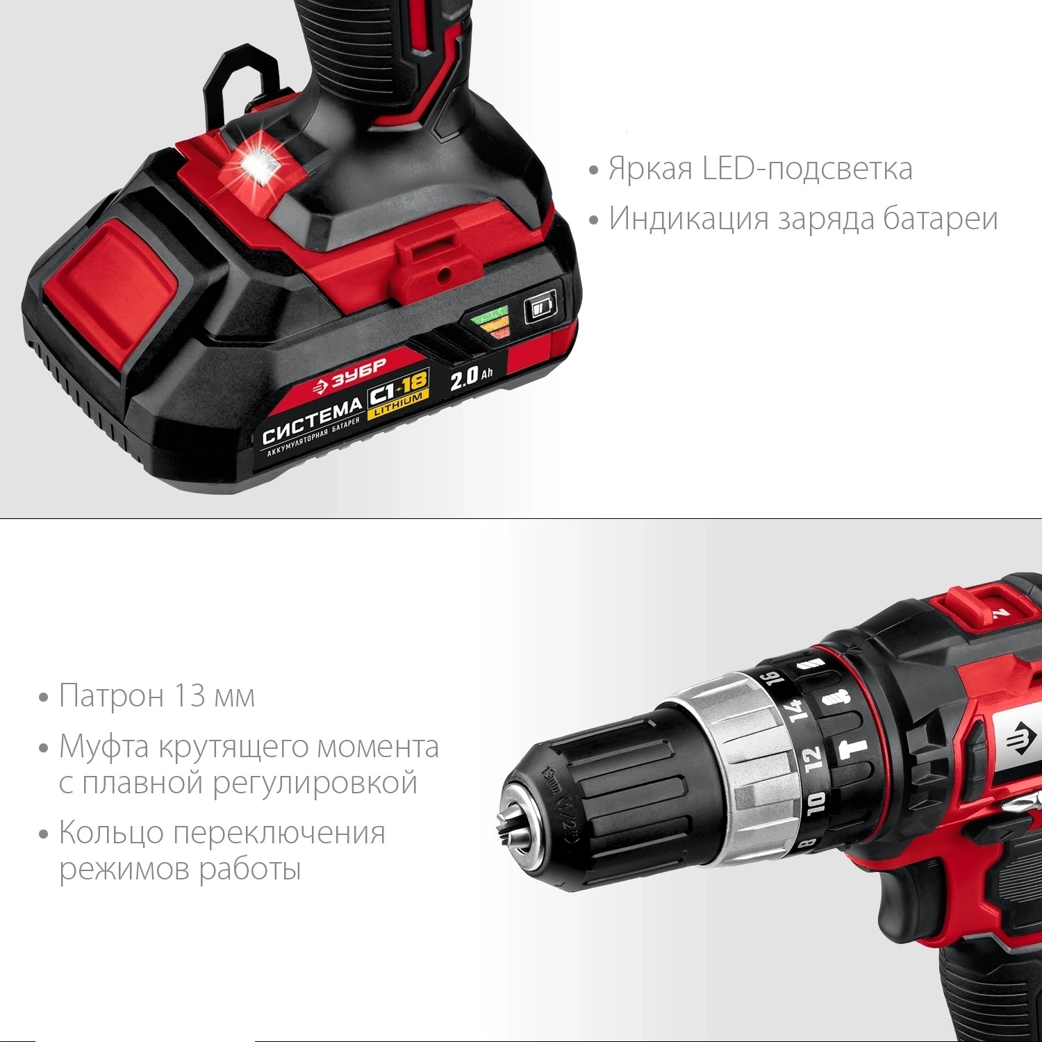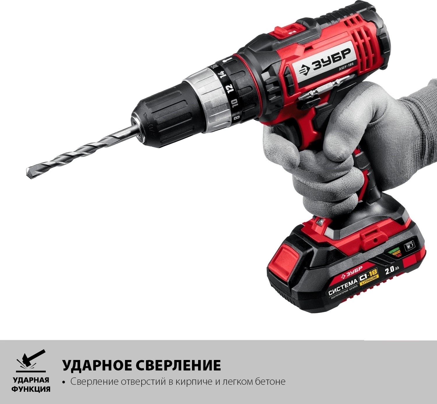 Ударная дрель-шуруповерт ЗУБР С1-18 18 В 40 Н·м 2 АКБ 2 А·ч