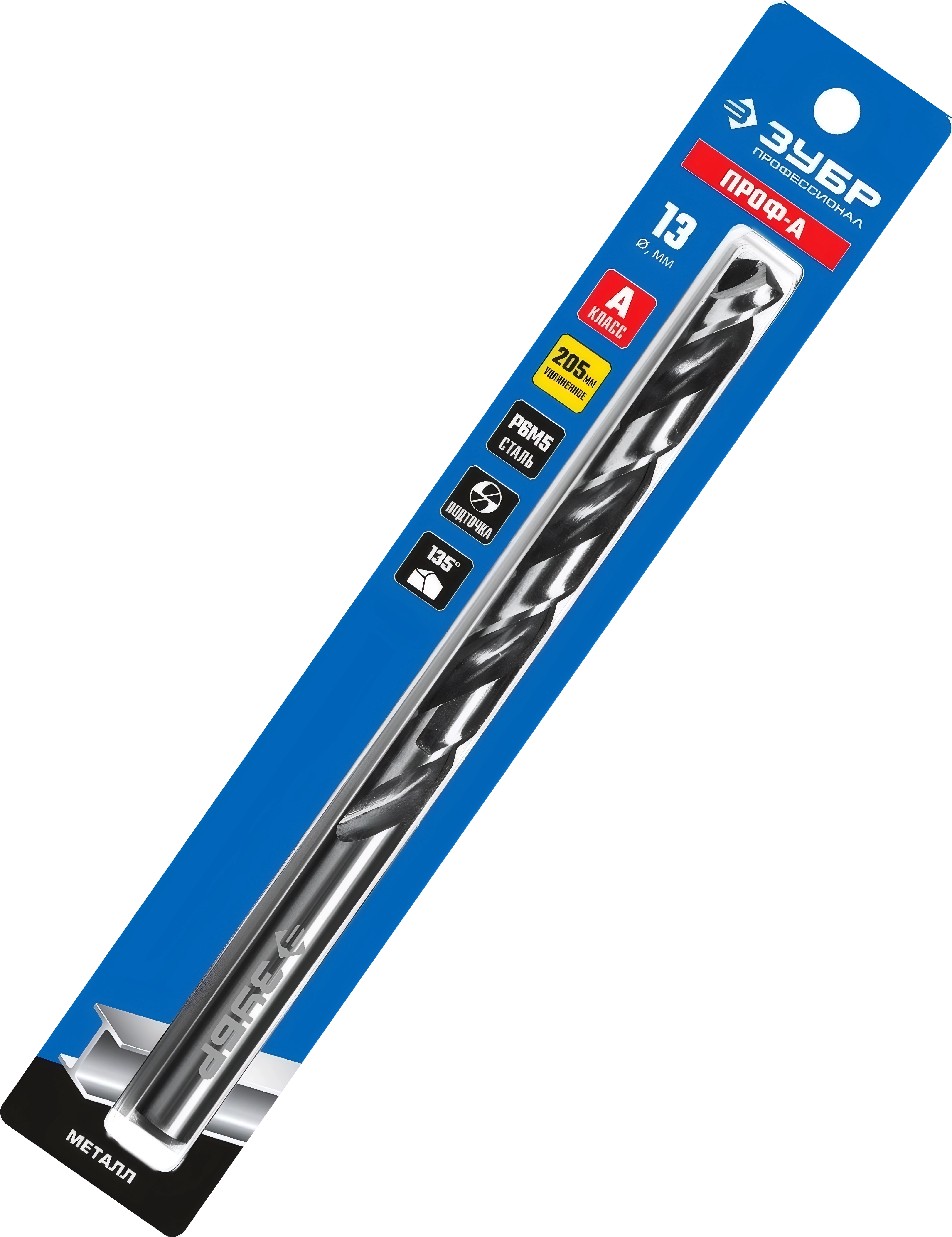 Удлиненное сверло по металлу ЗУБР ПРОФ-А 13.0 х 205 мм сталь Р6М5 класс А
