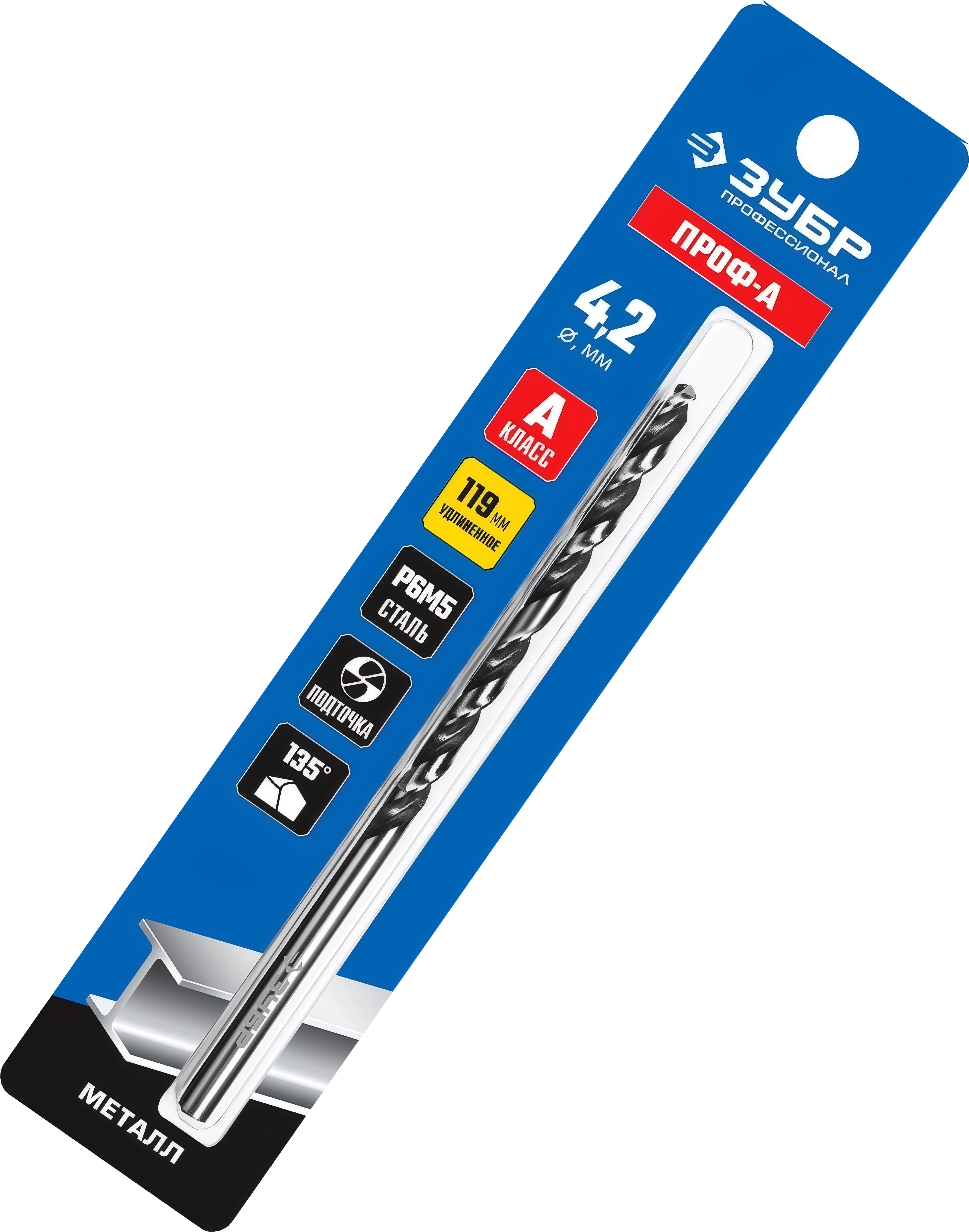 Удлиненное сверло по металлу ЗУБР ПРОФ-А 4.2 х 119 мм сталь Р6М5 класс А
