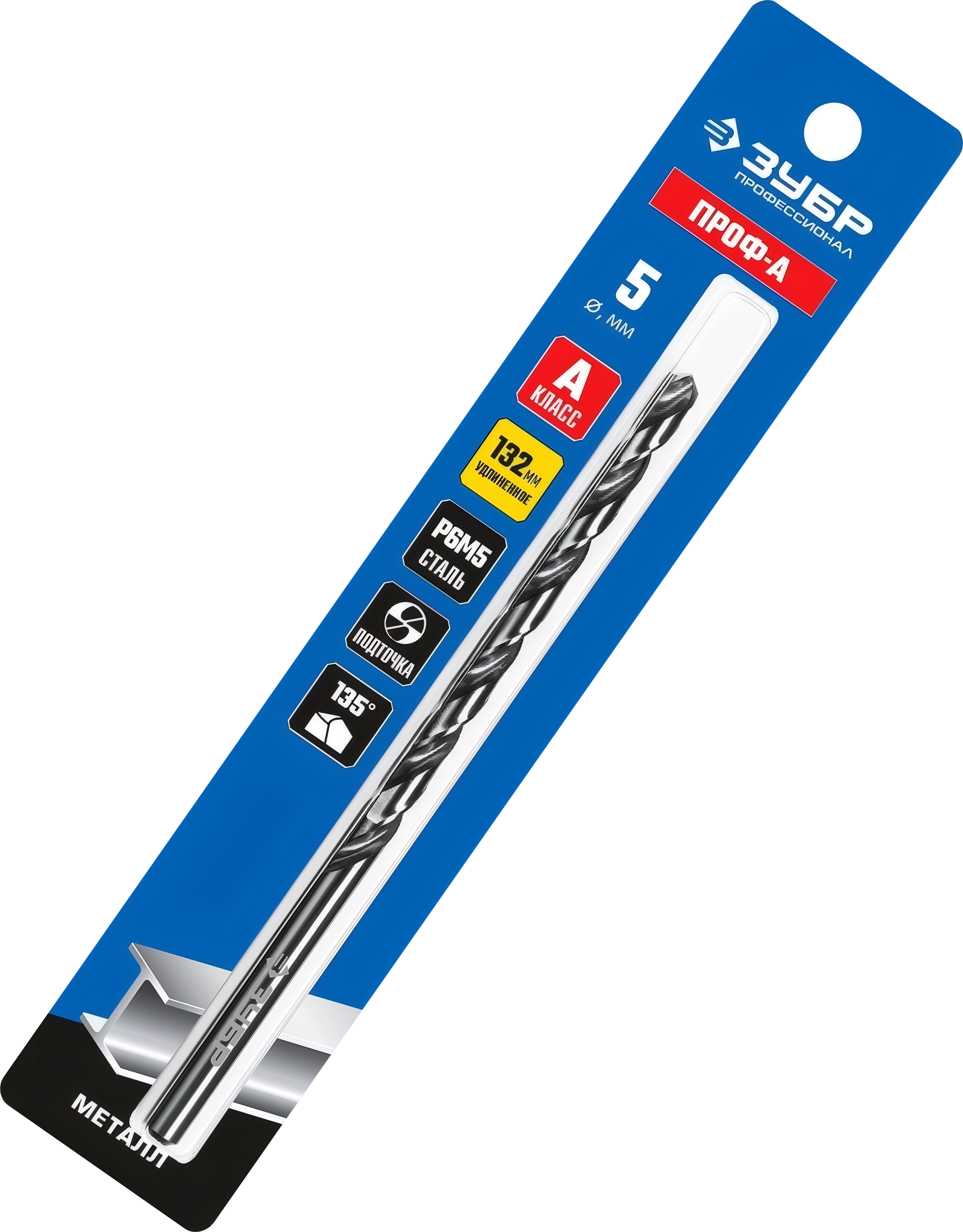 Удлиненное сверло по металлу ЗУБР ПРОФ-А 5.0 х 132 мм сталь Р6М5 класс А