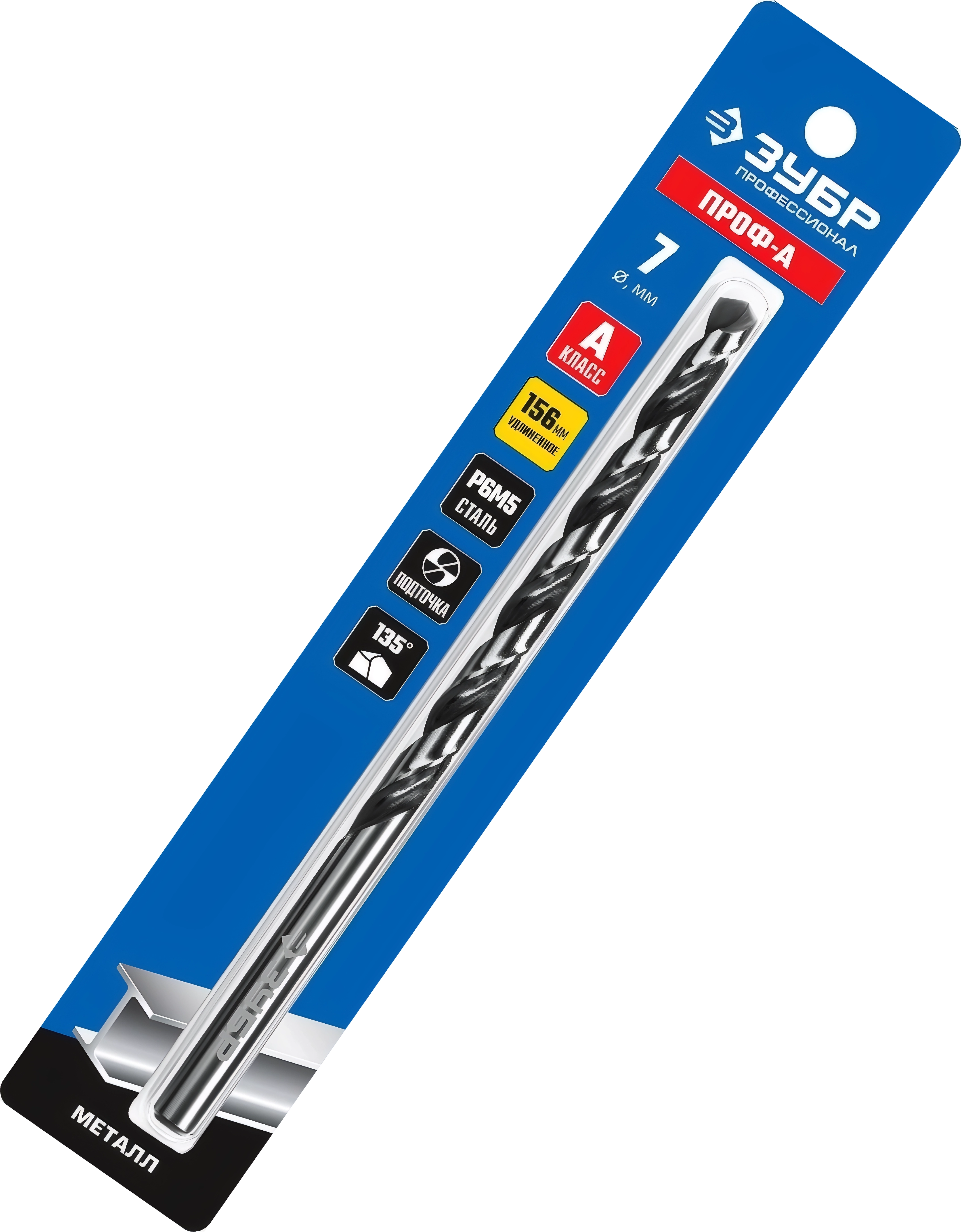 Удлиненное сверло по металлу ЗУБР ПРОФ-А 7.0 х 156 мм сталь Р6М5 класс А