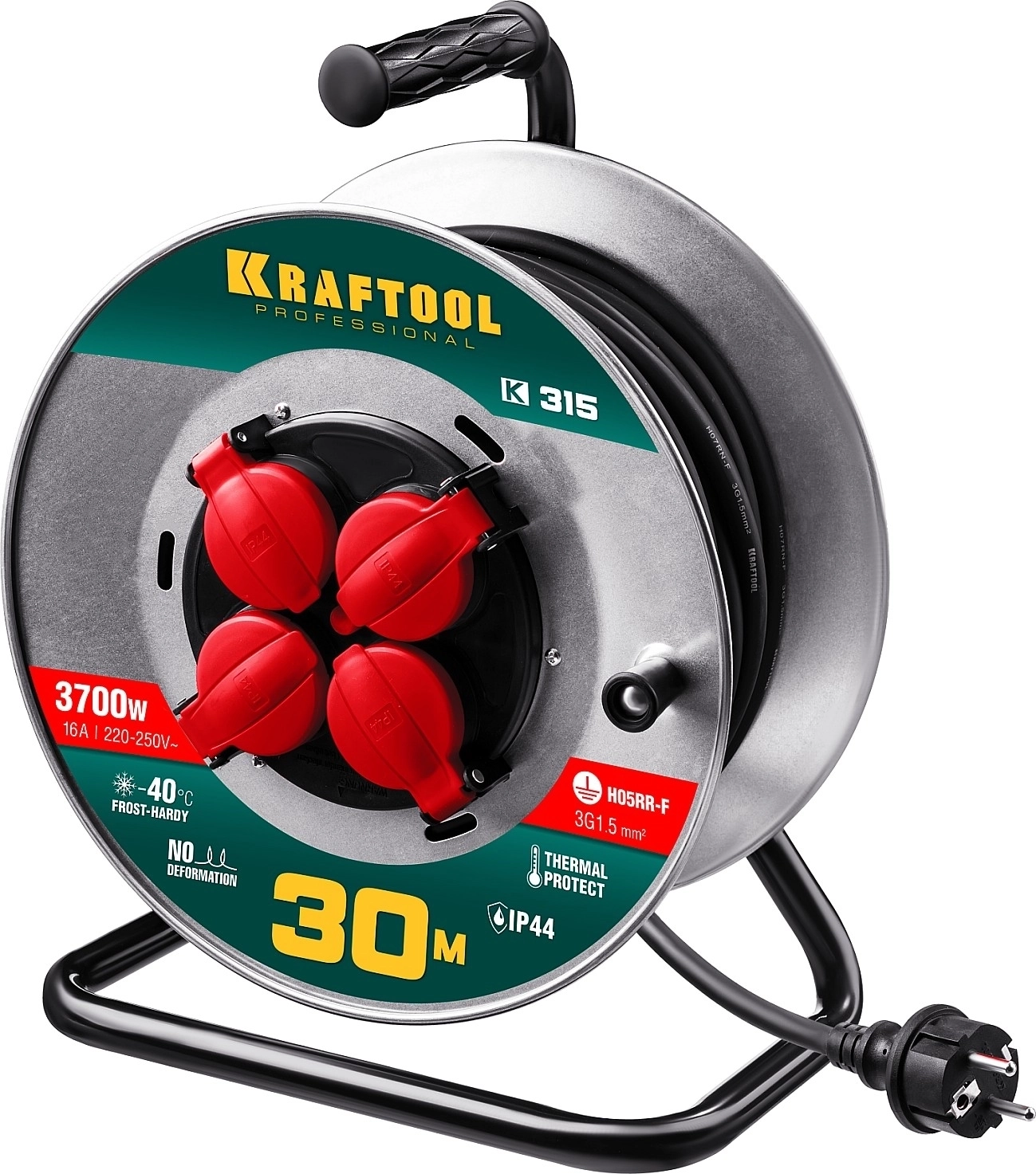 Силовой удлинитель на стальной катушке K-315, КГ, 3 x 1.5 мм2, 30 м, 3700 Вт, IP44 арт. 109705