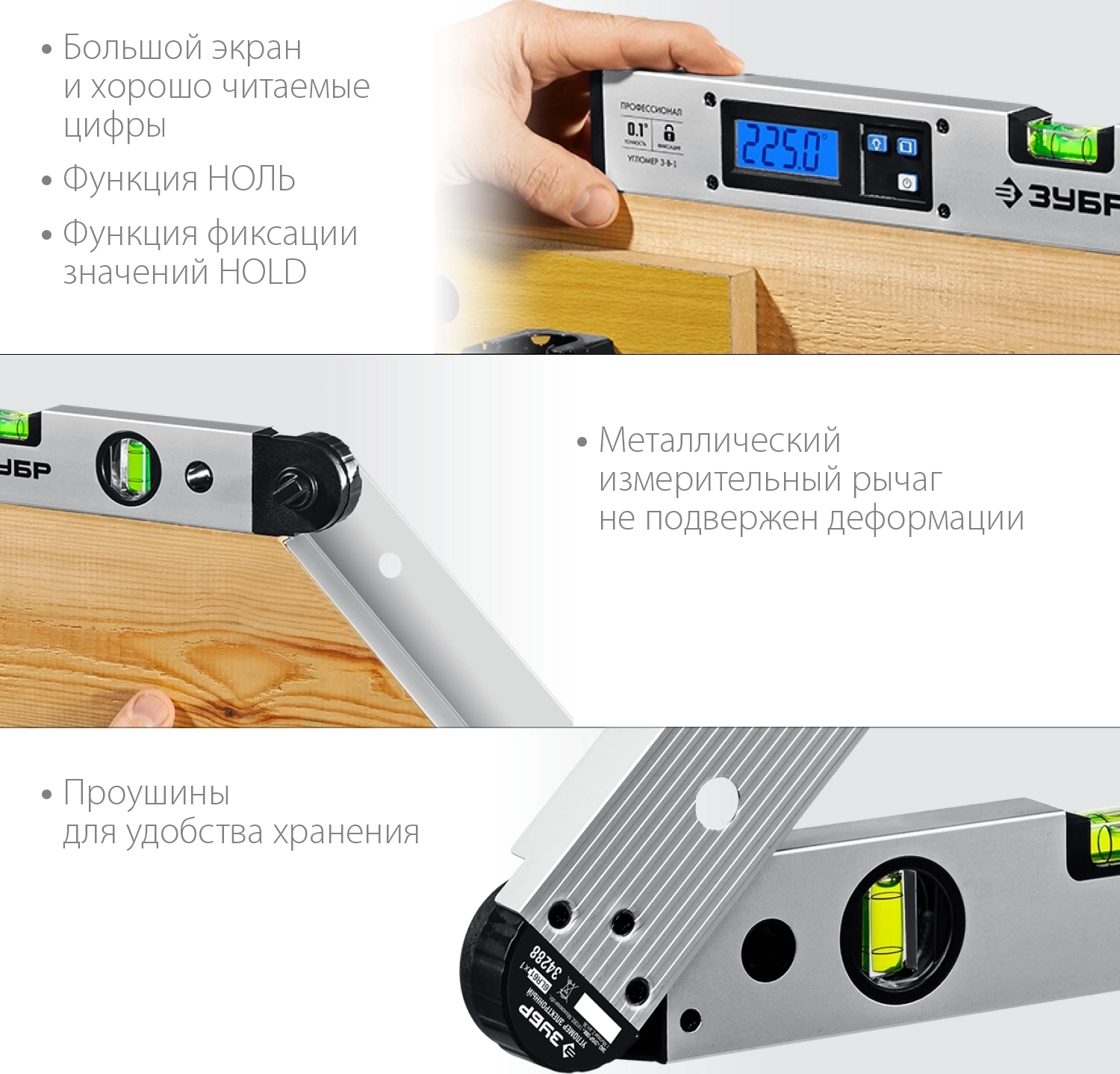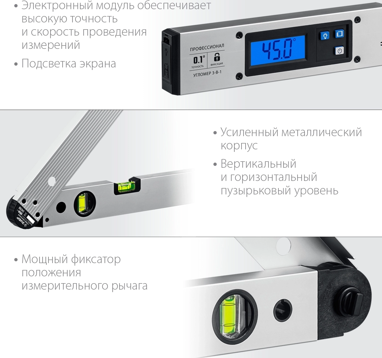 Угломер электронный ЗУБР 400 мм 0 - 230 гр. ±0.5 гр.