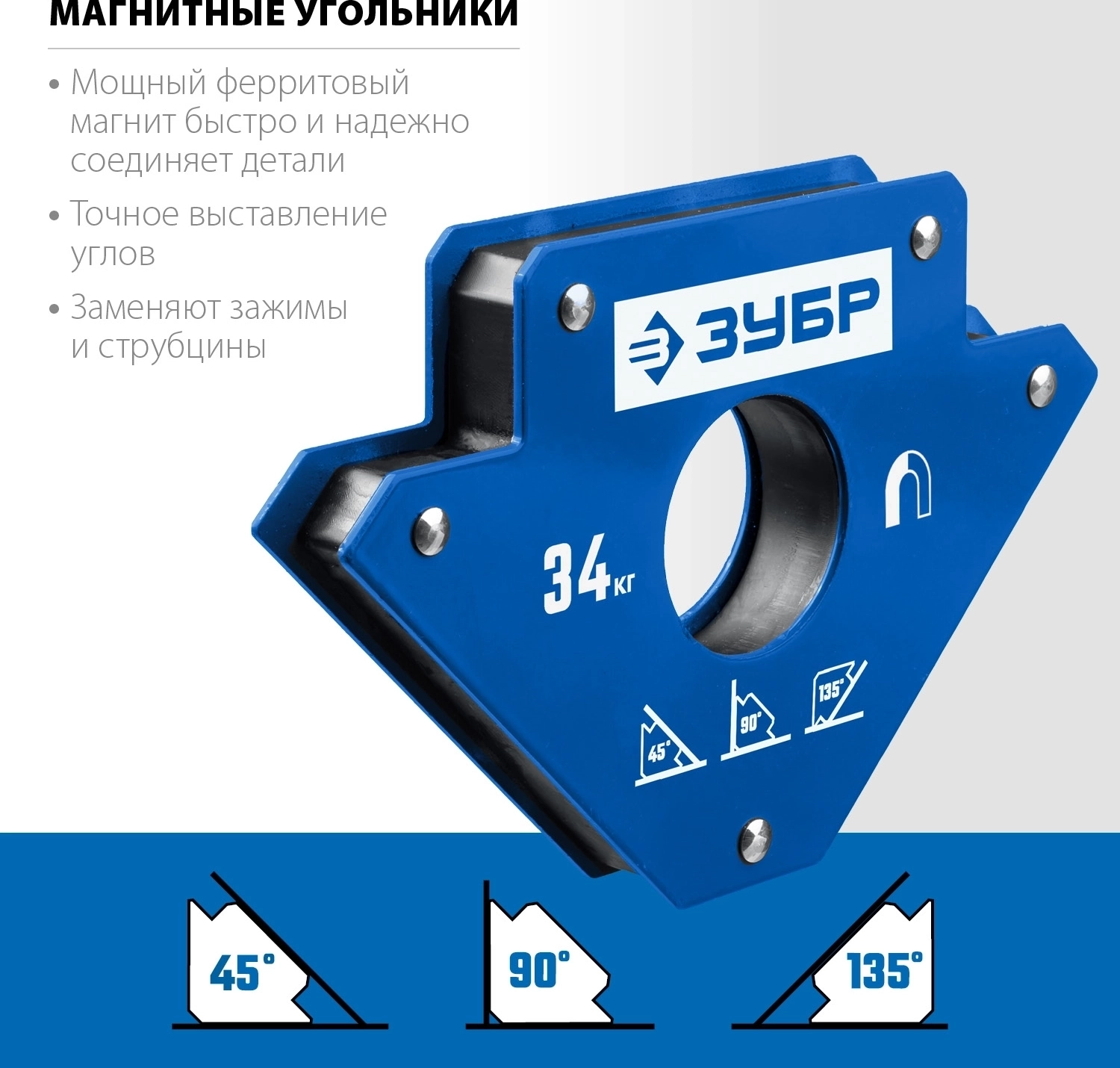 Магнитные угольники для сварки ЗУБР - это быстрое и надежное крепление деталей во время сварочных работ под различными углами.