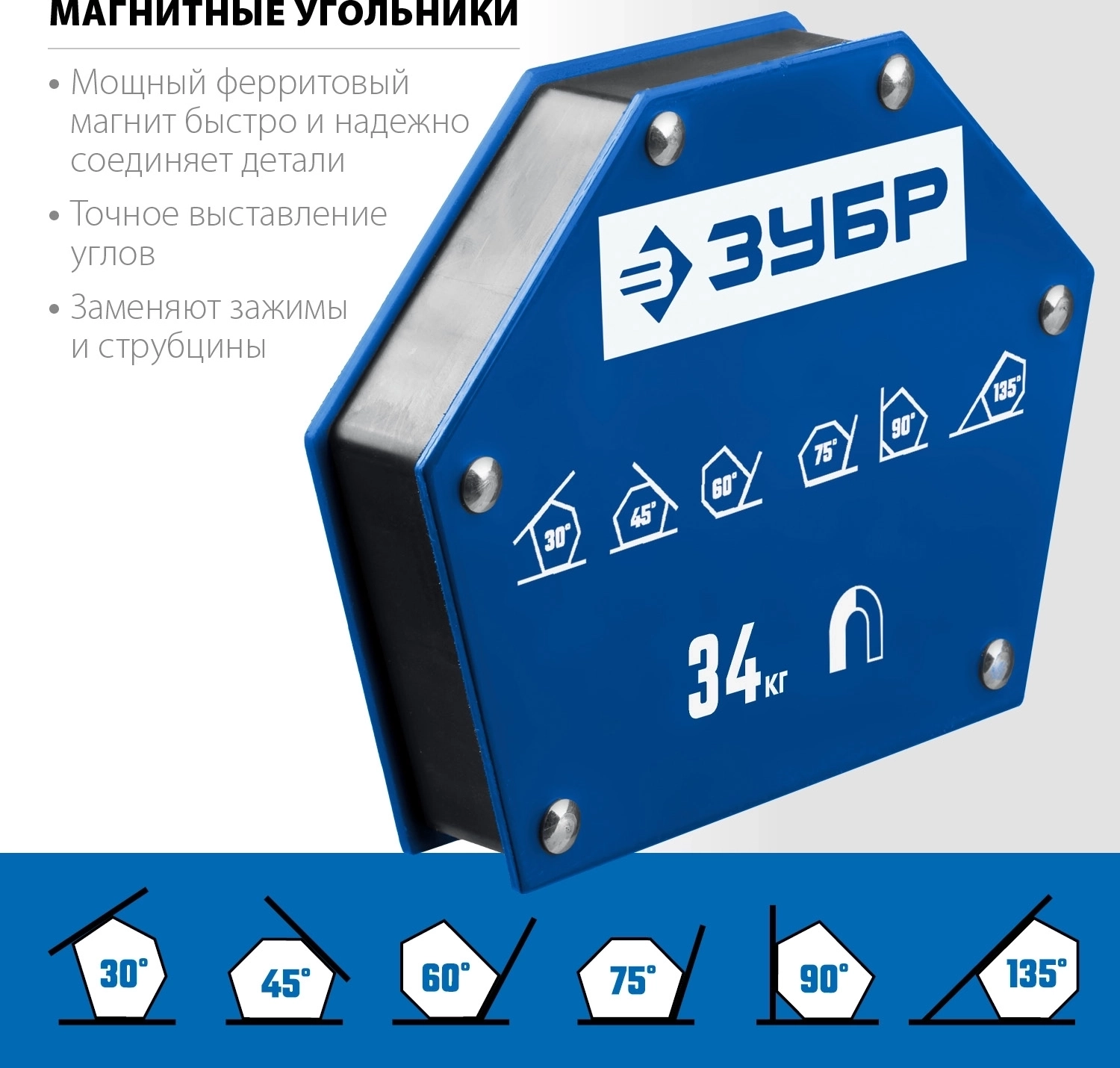 Магнитные угольники для сварки ЗУБР - это быстрое и надежное крепление деталей во время сварочных работ под различными углами.